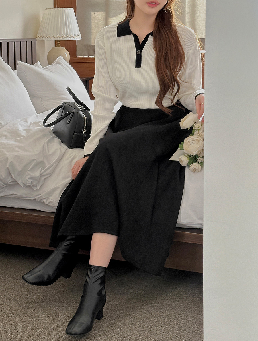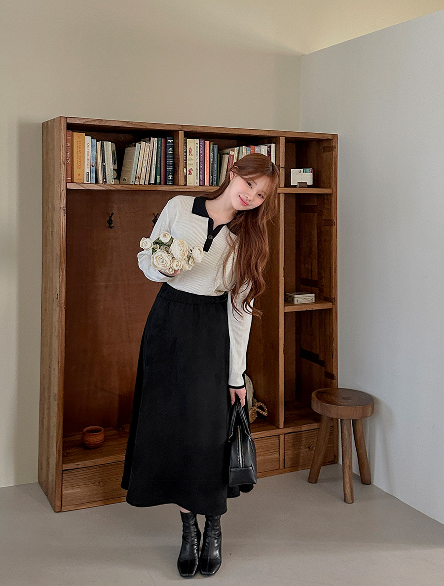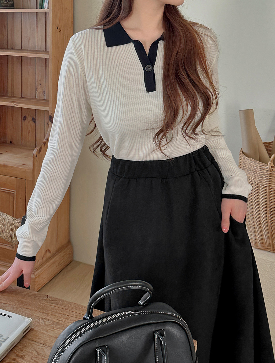 Residen Contrast Button Collar Knit