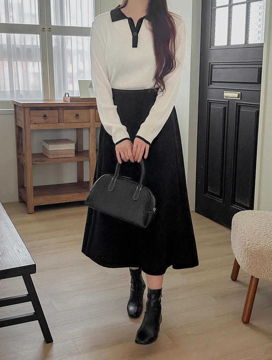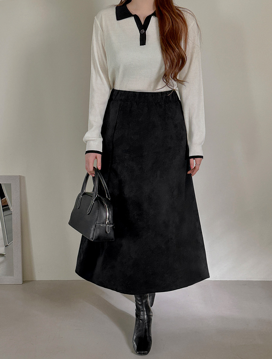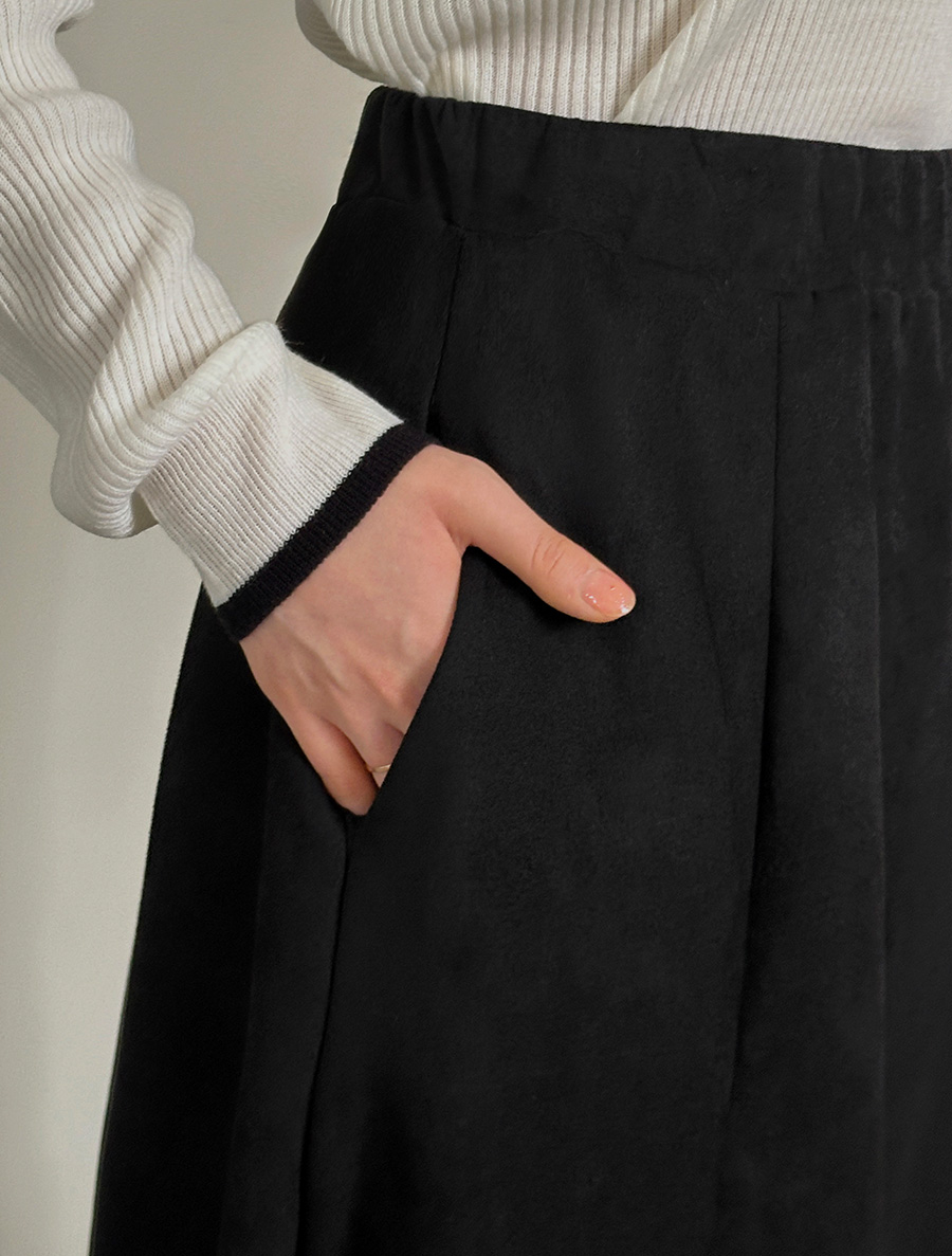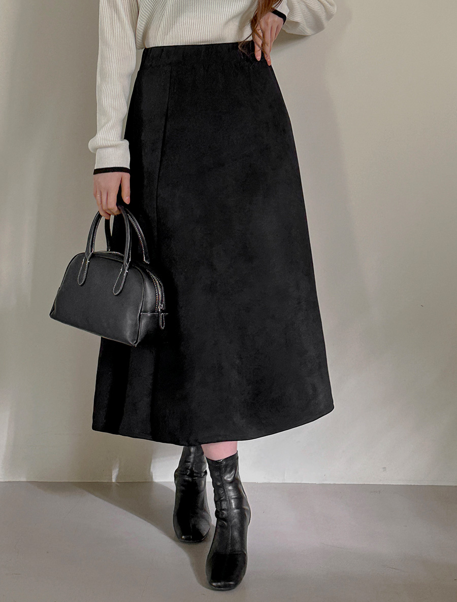 Lemuden Suede Flare Long Skirt