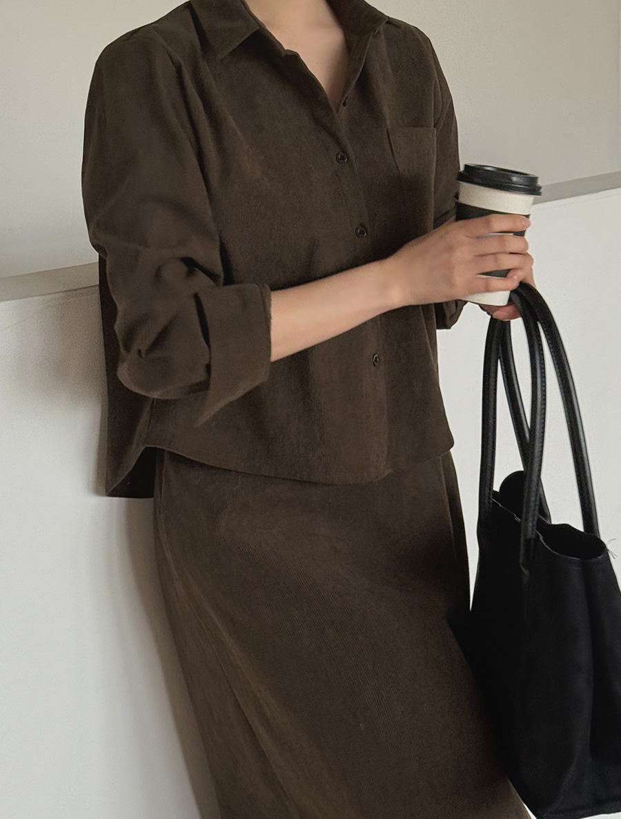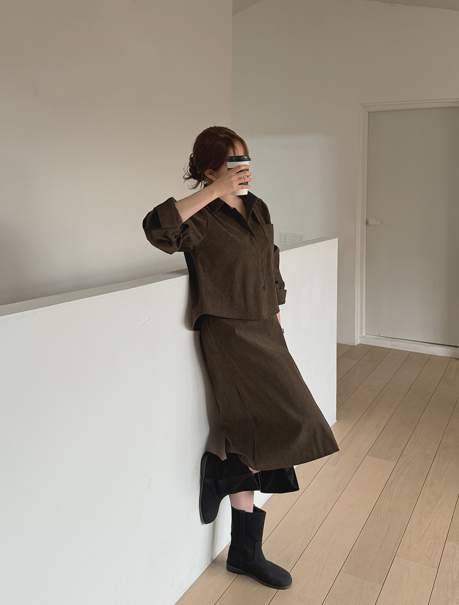Pateven corduroy fleece semi-crop shirt