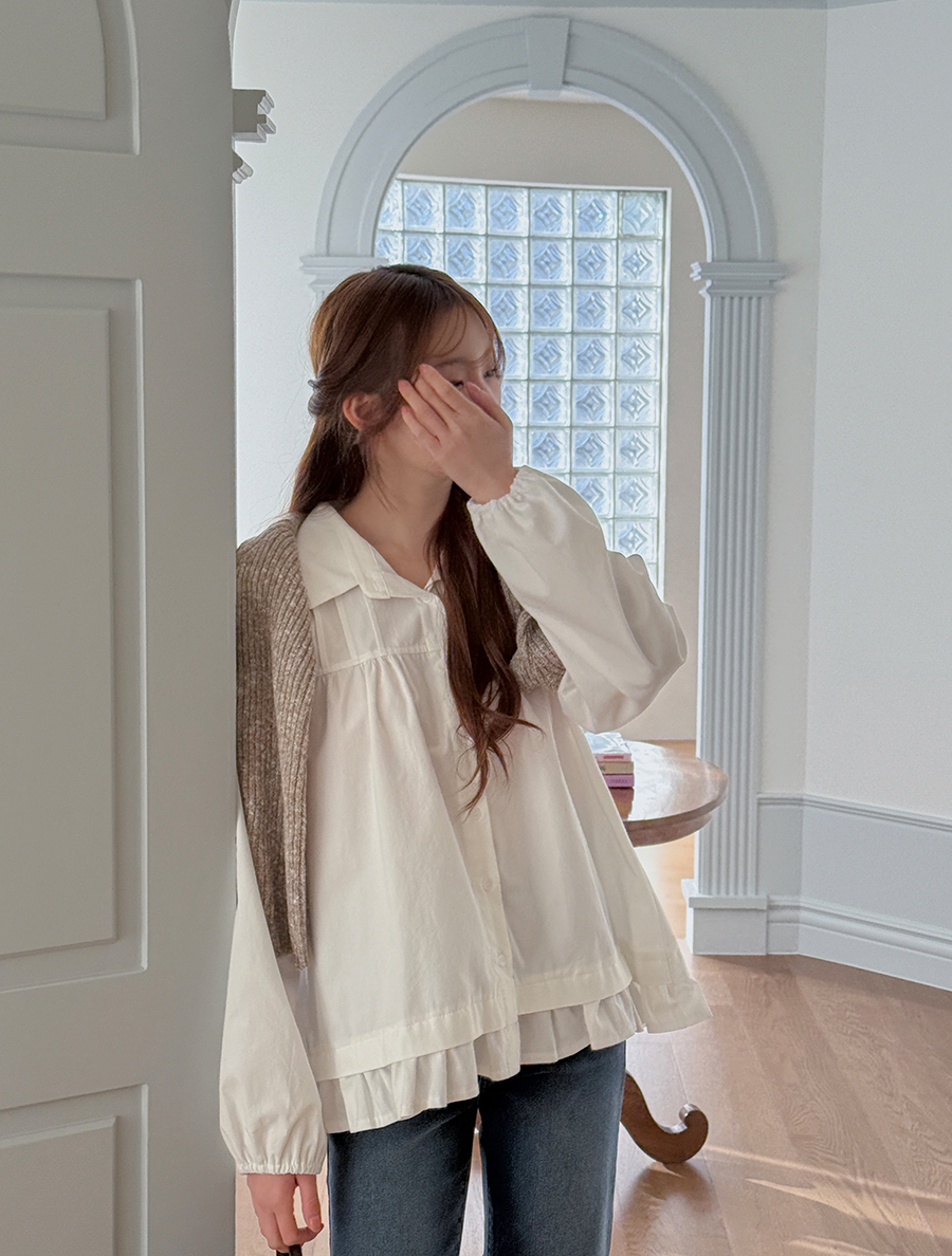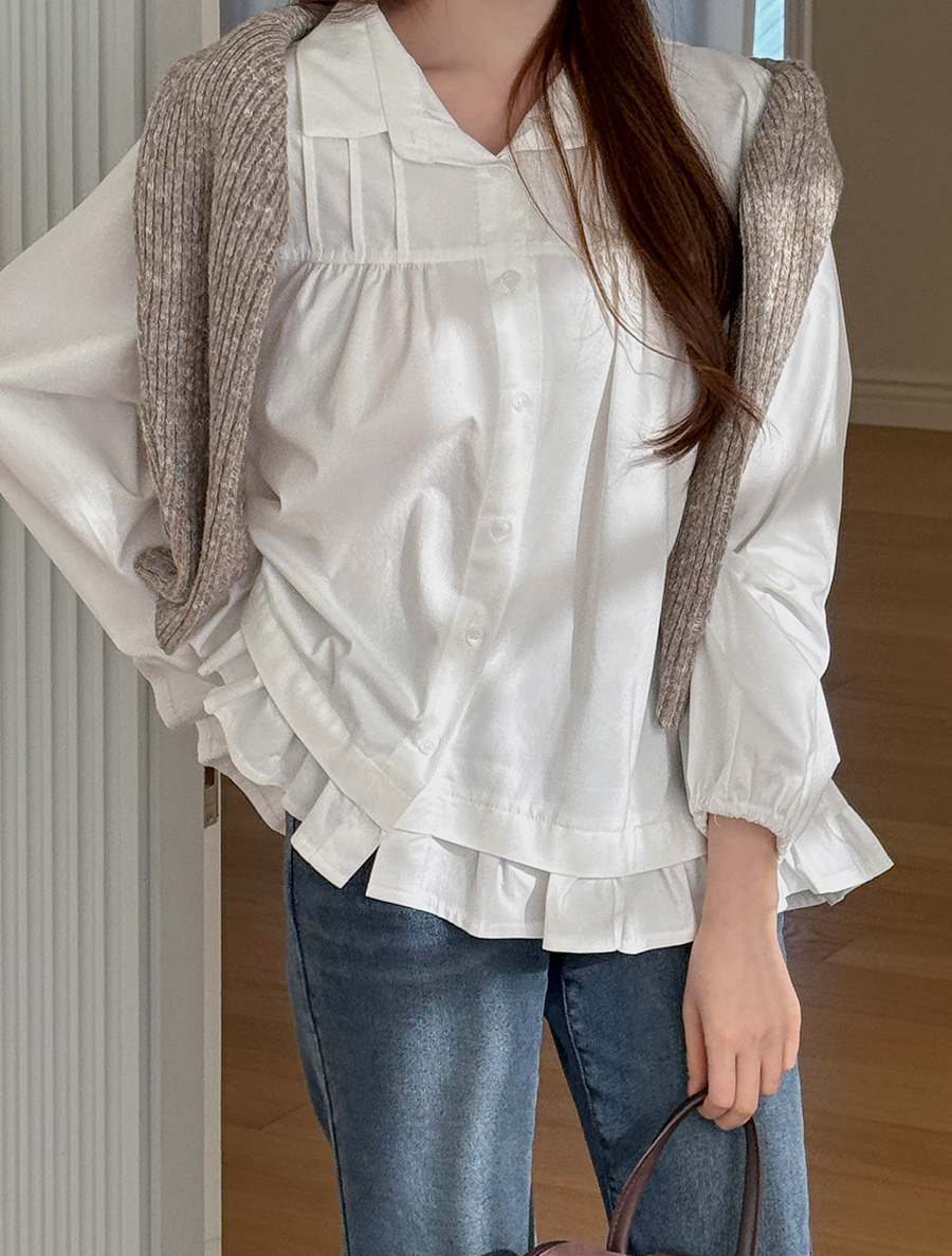 Refpin Pintuck Frill Cotton Blouse