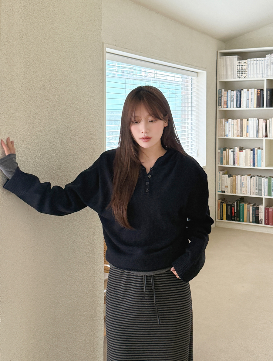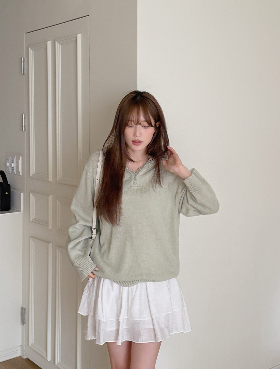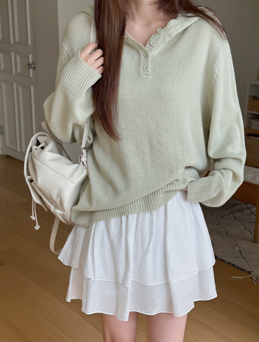 [EVELLET] Troupy Button Hood Knit