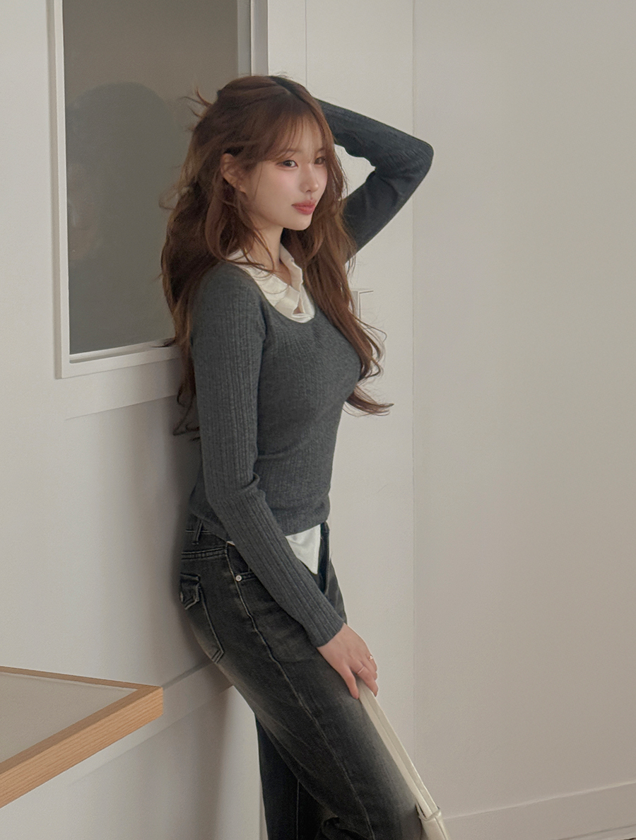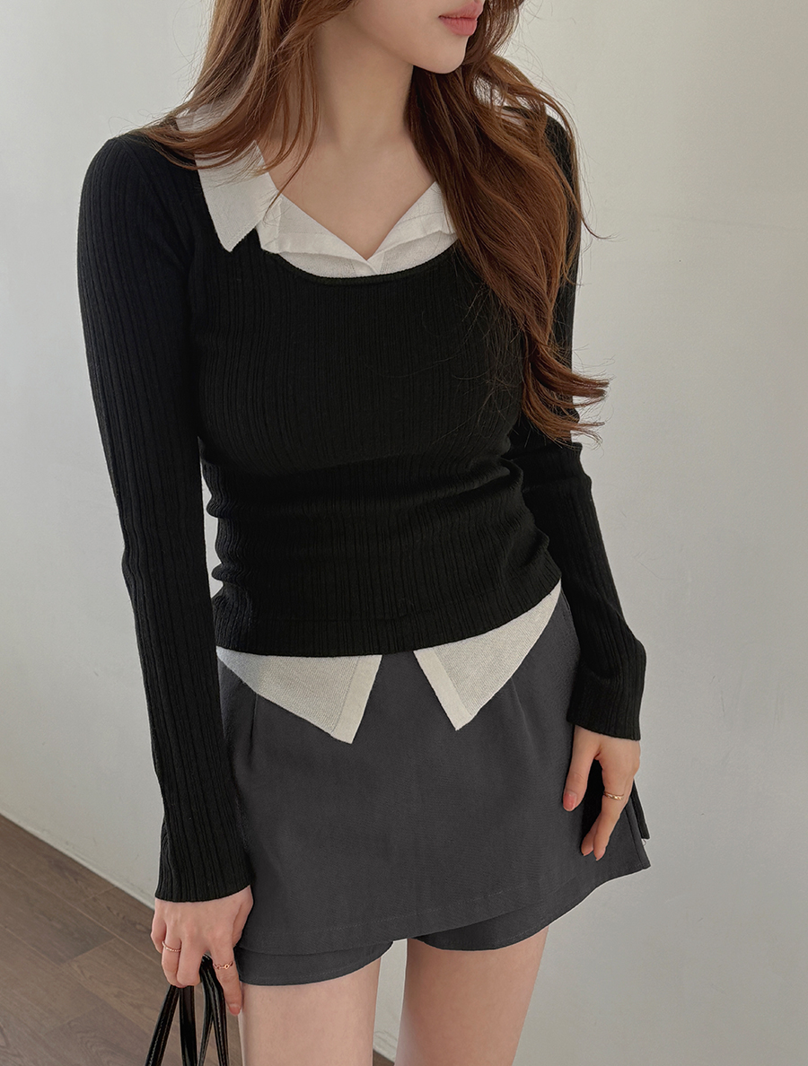 [EVELLET] Neaven Layered Contrast Collar Knit