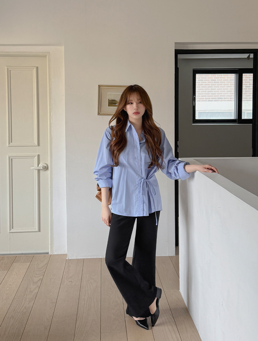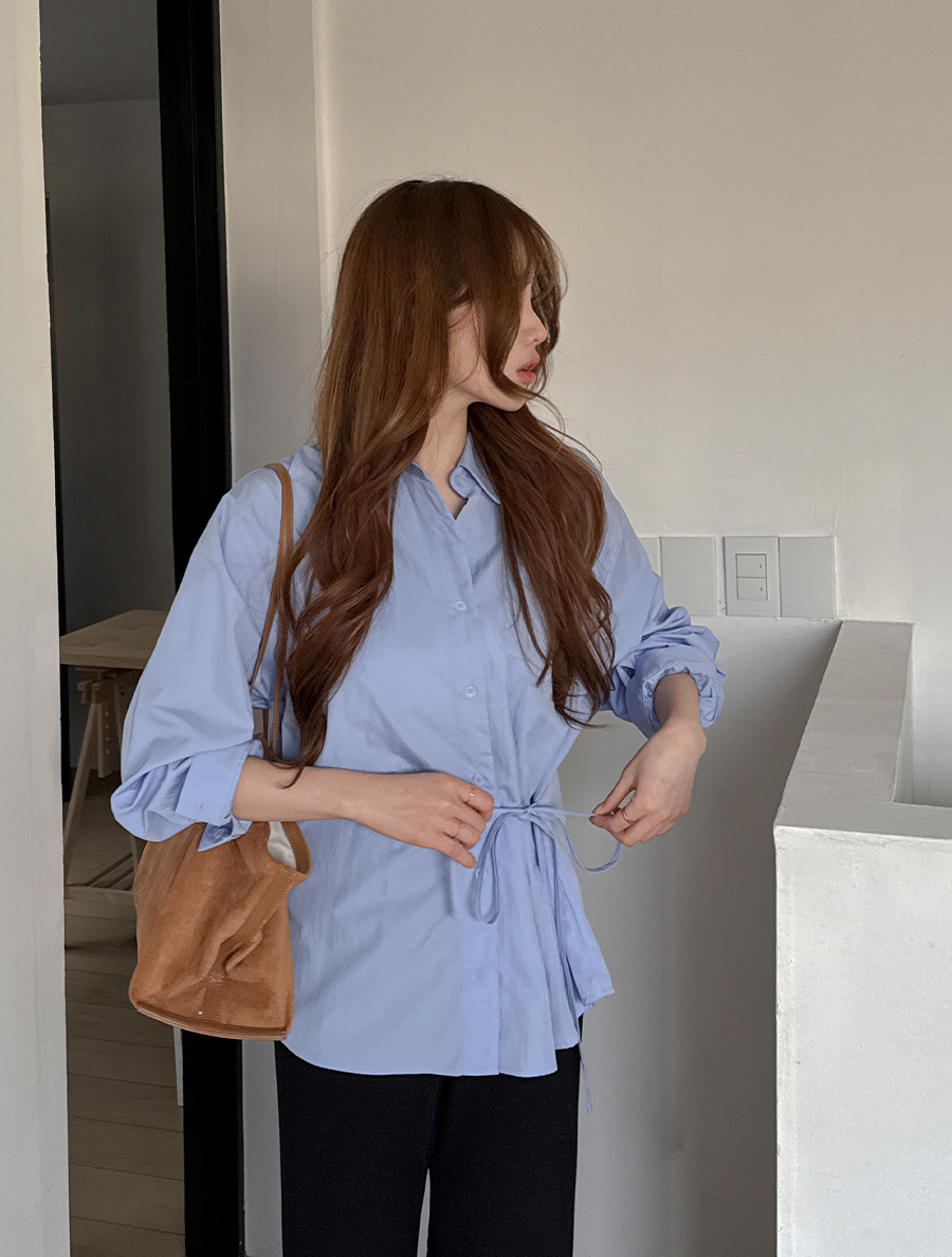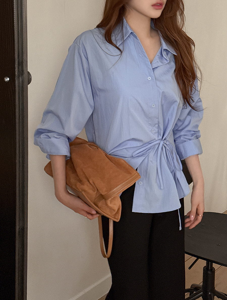 Tramu wrap bowknot collar shirt