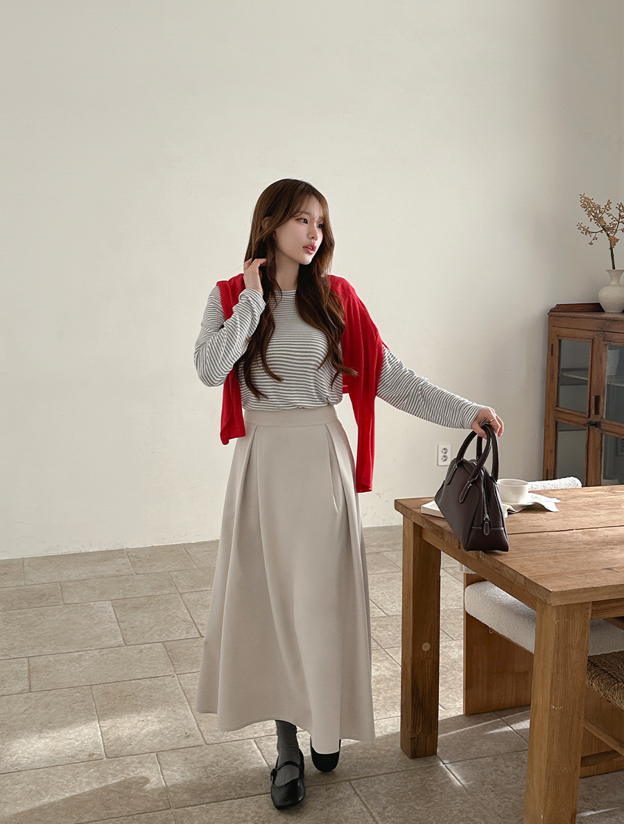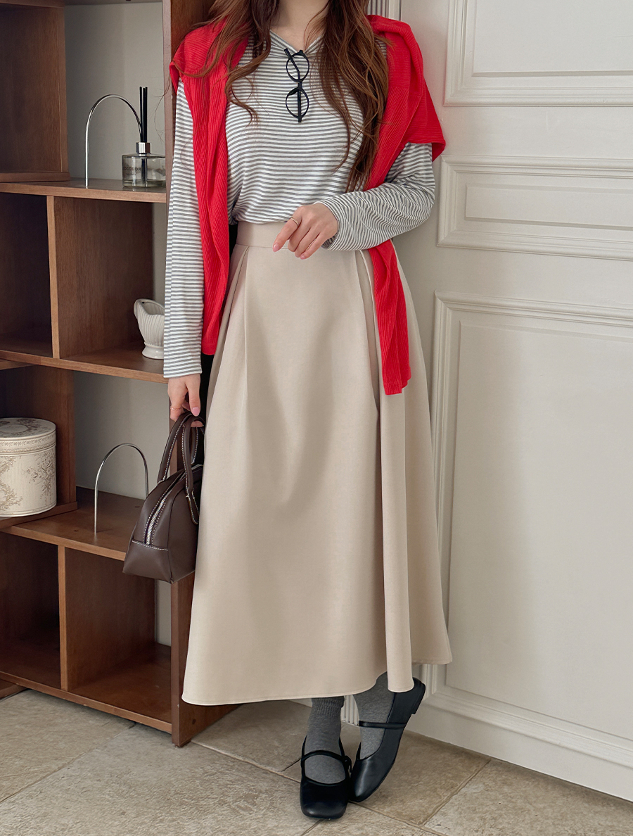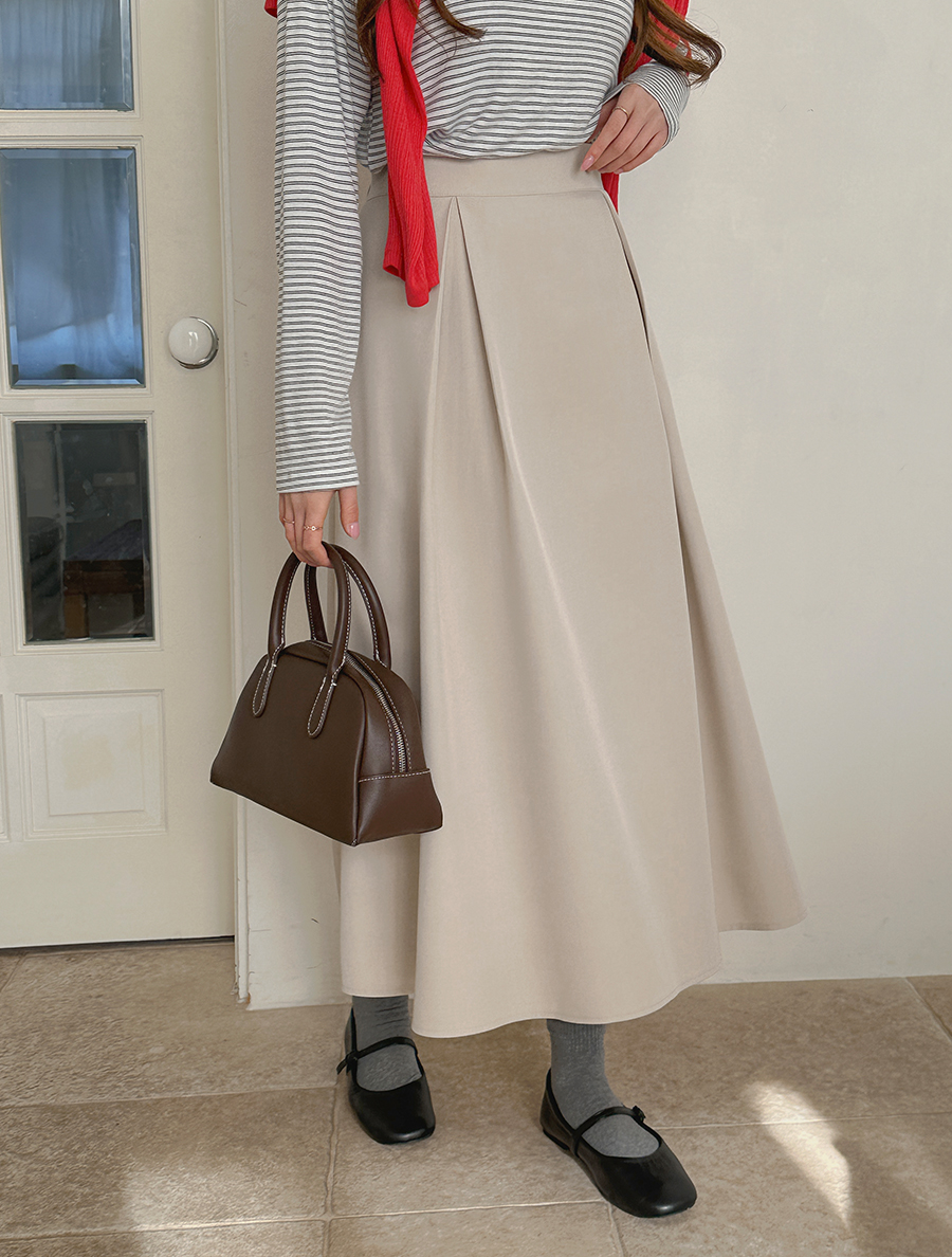 Domaven Pintuck Flare Long Skirt