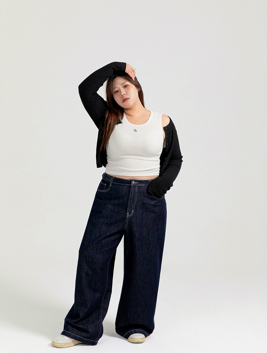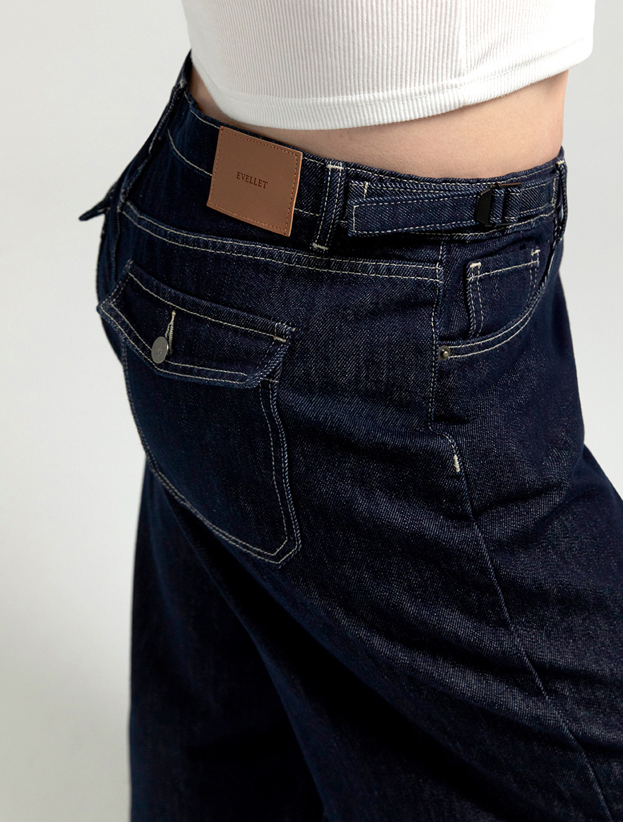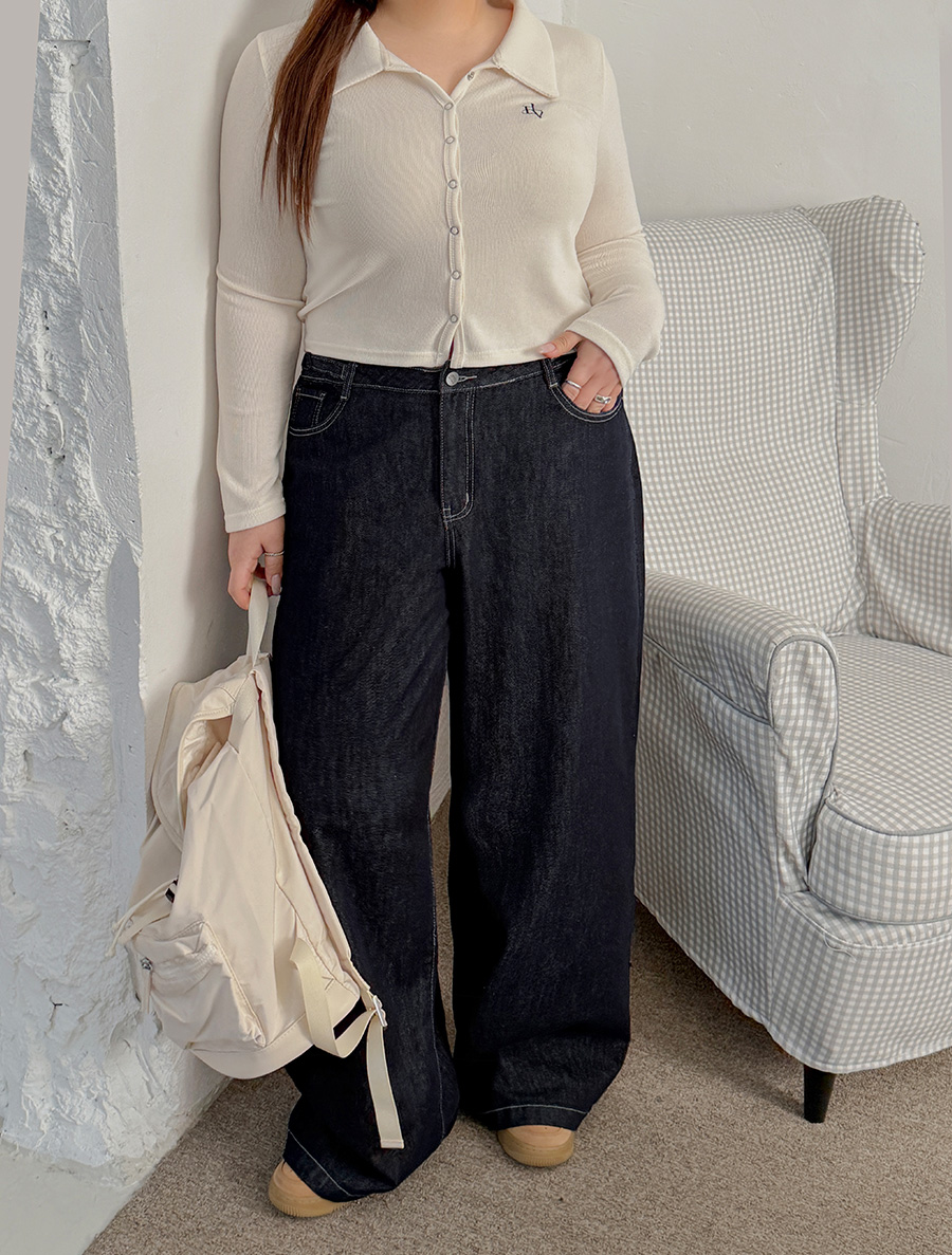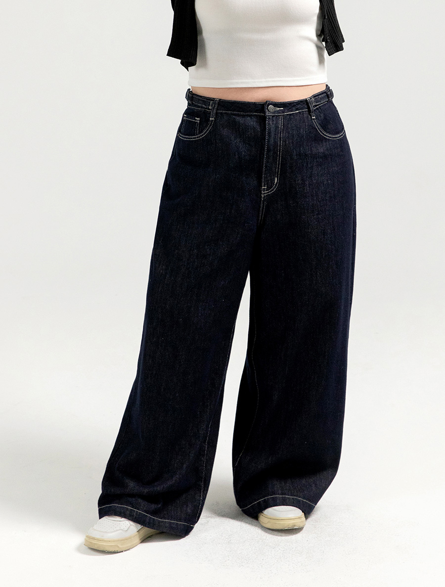[CURVE] Paynew Non-Fade Buckle Wide Denim Pants