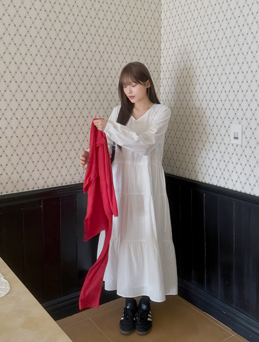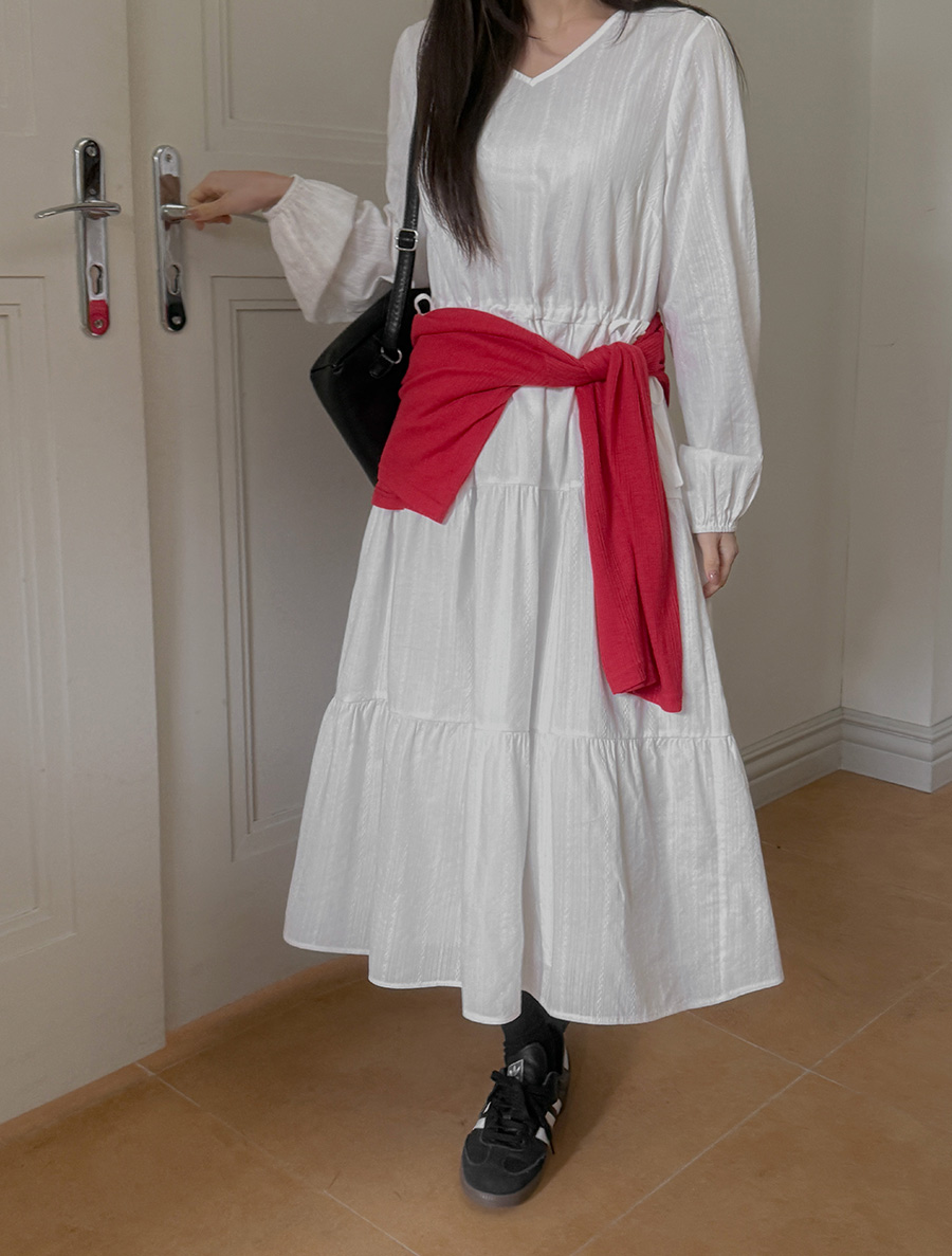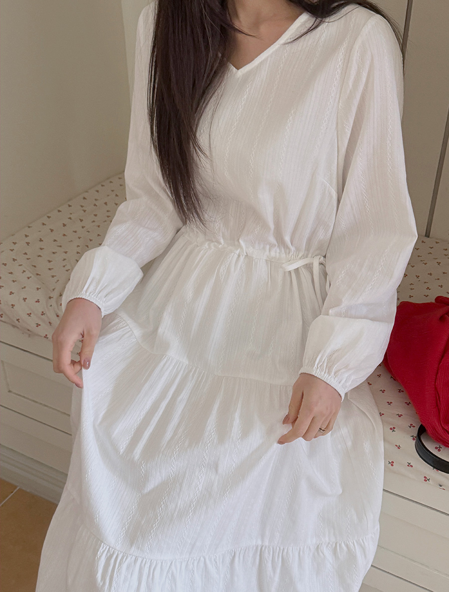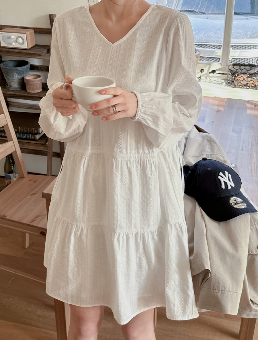 [EVELLET] Ripe's Length Cotton Jacquard Tiered Dress
