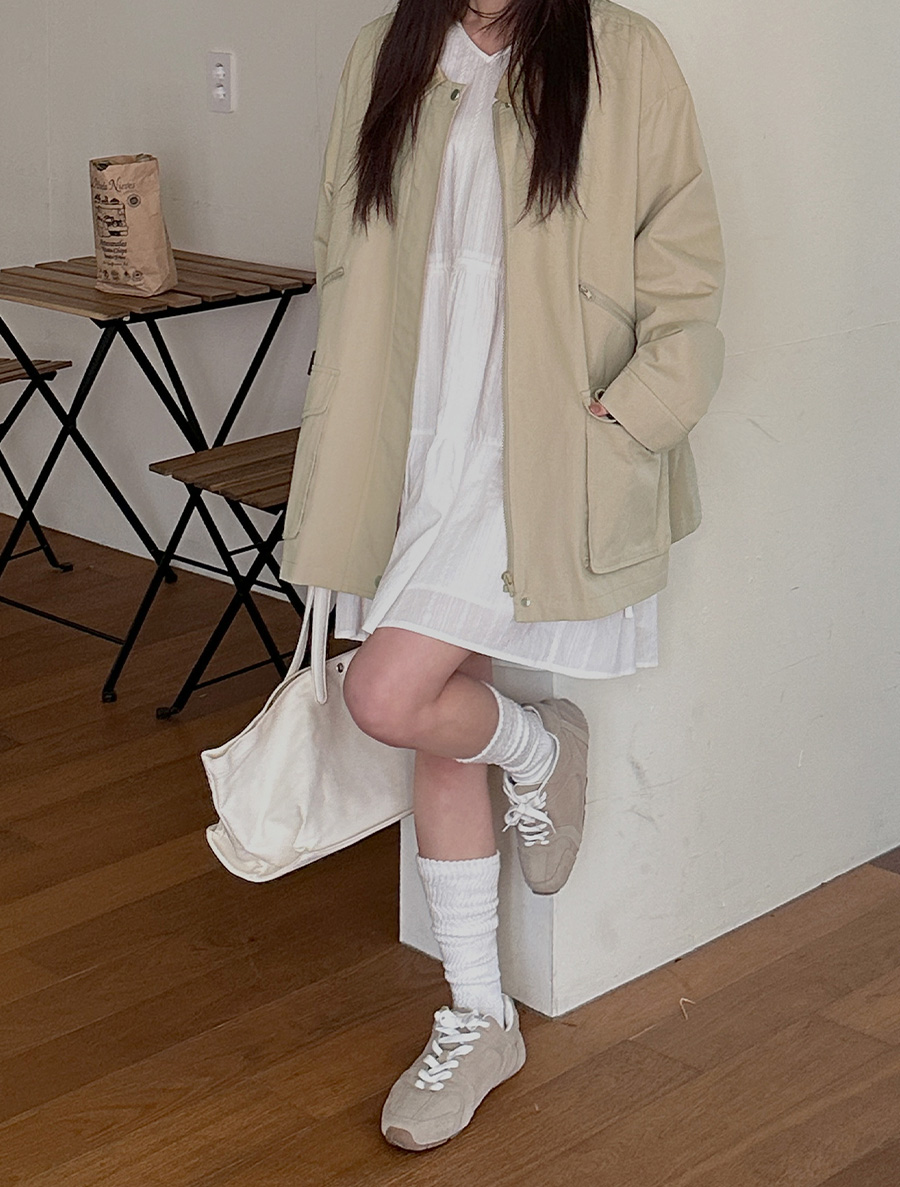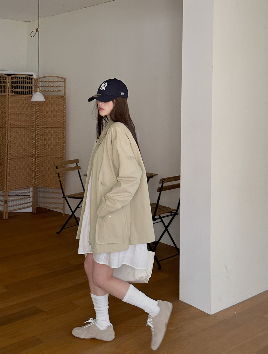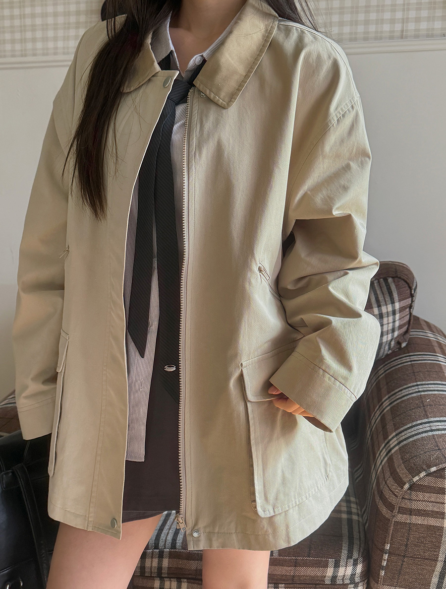 [EVELLET] Niked Cotton Loose Fit Work Jacket