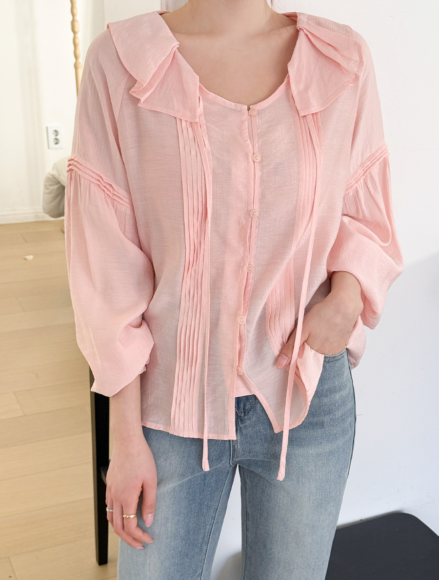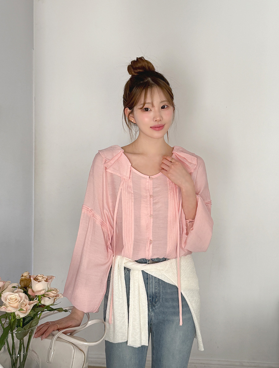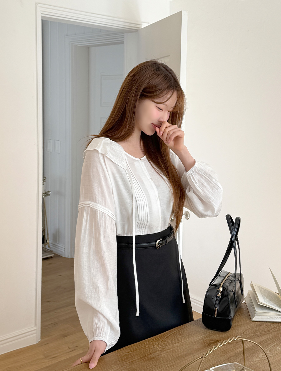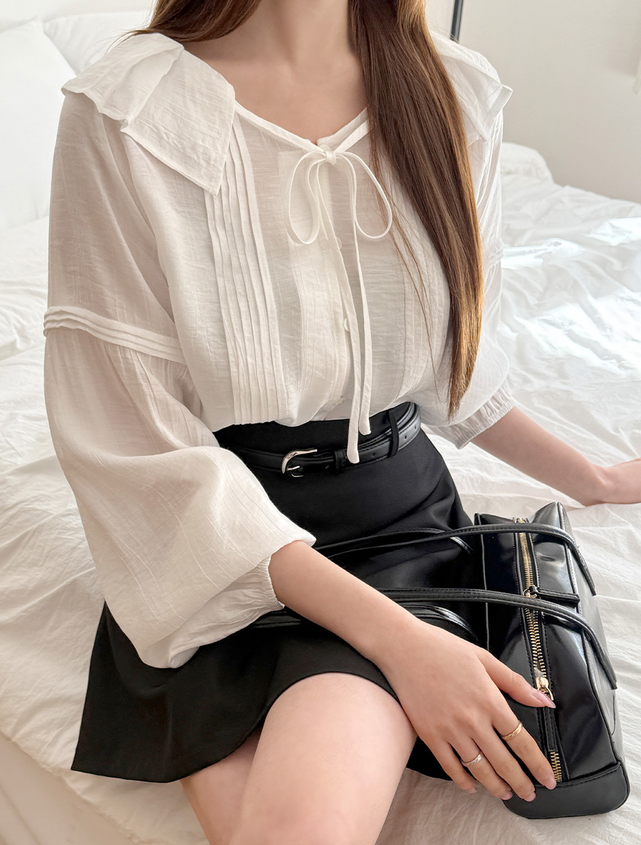[EVELLET] Bneed Yoru Pintuck Puff Blouse