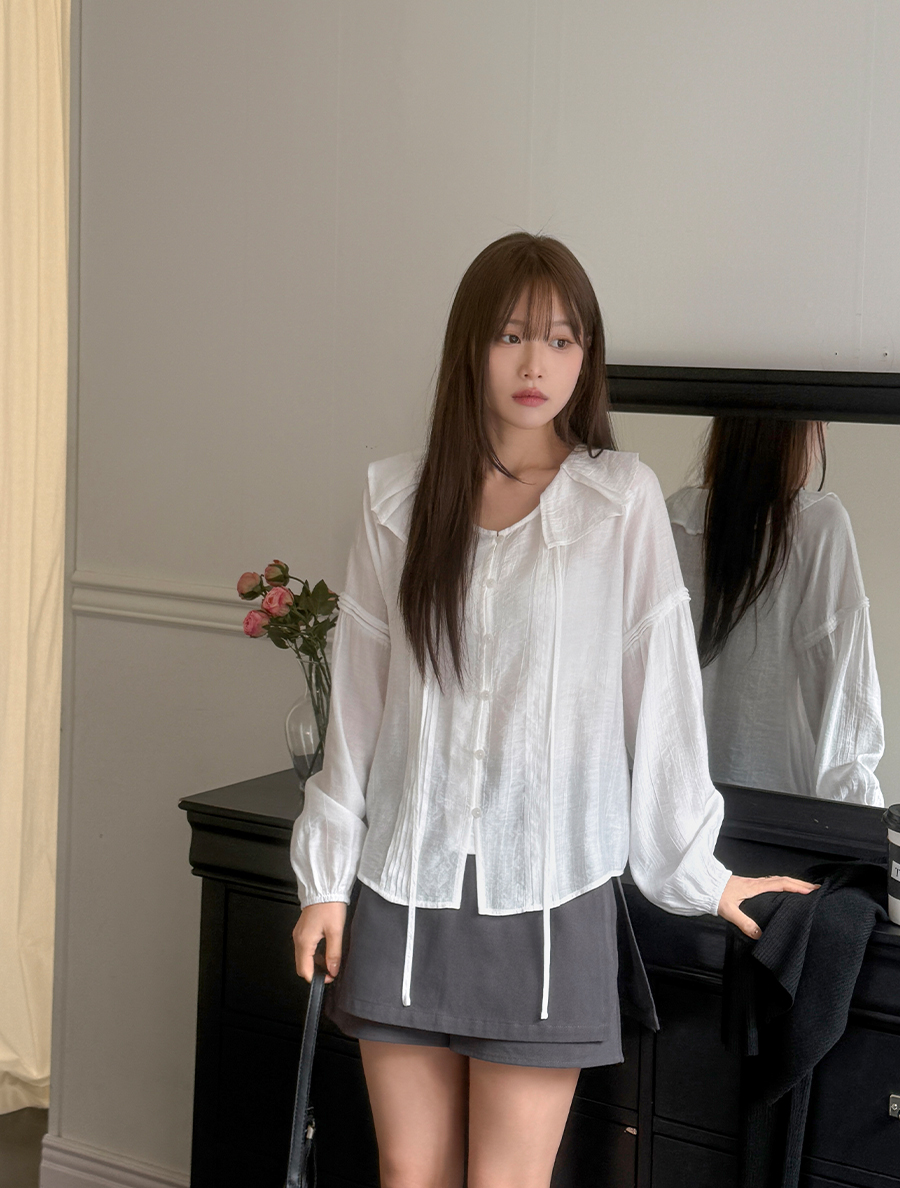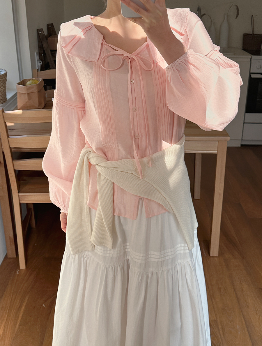 [EVELLET] Bneed Yoru Pintuck Puff Blouse