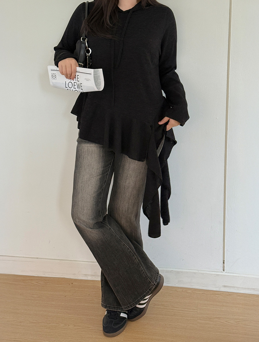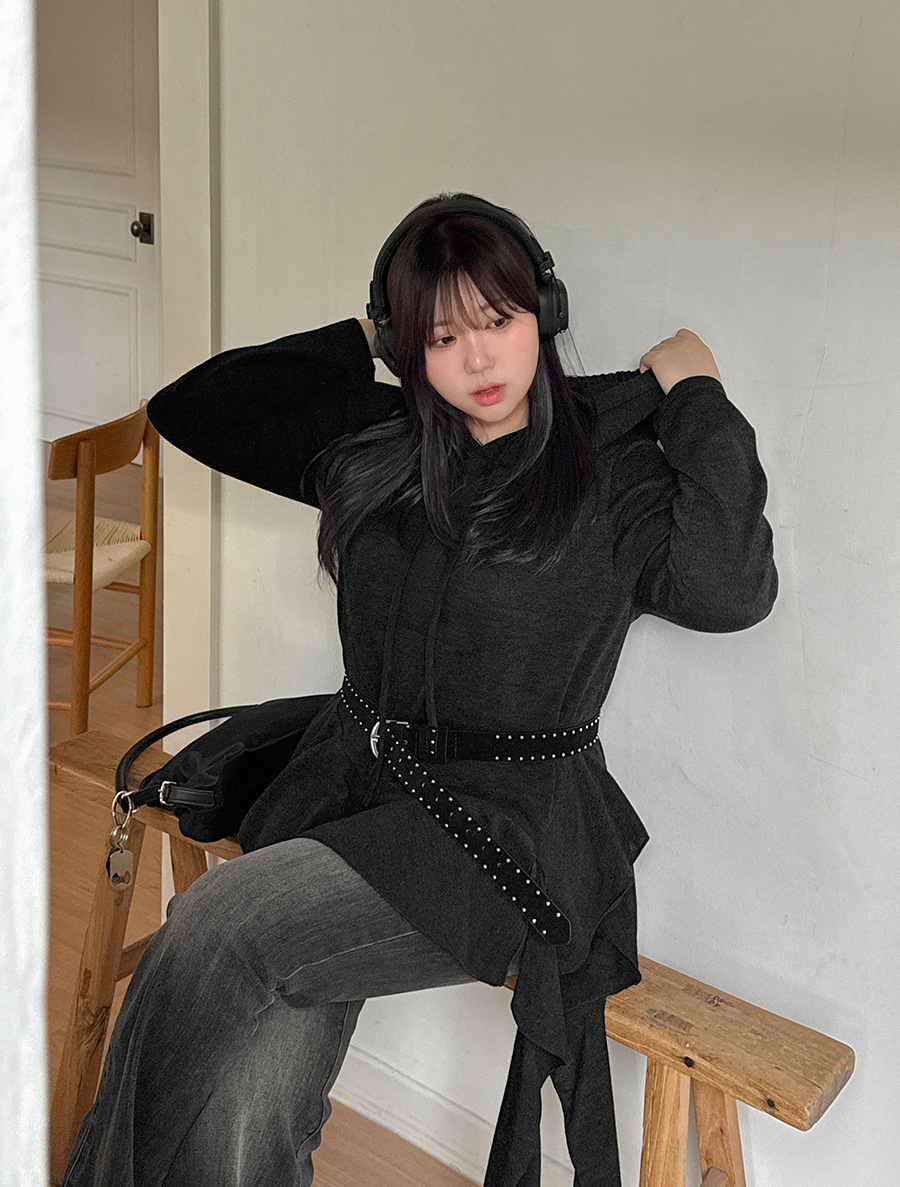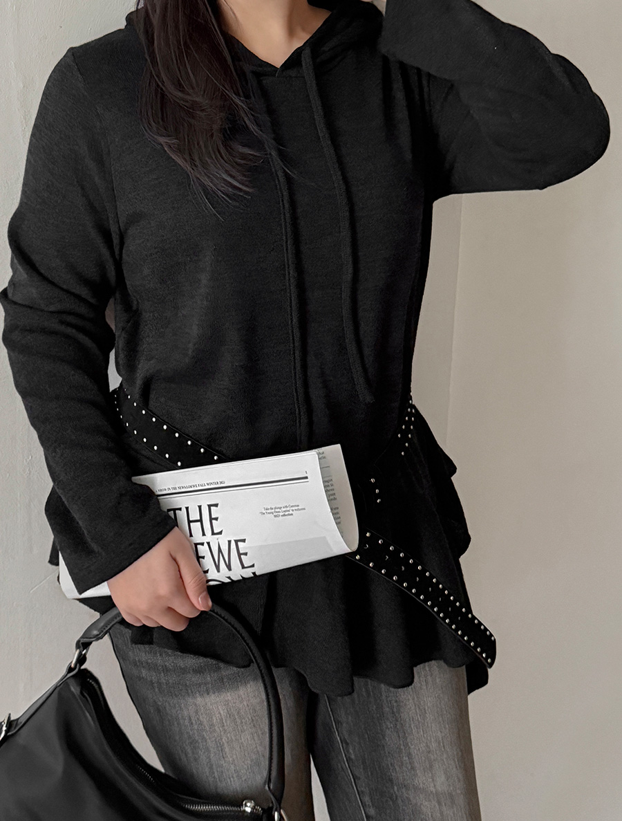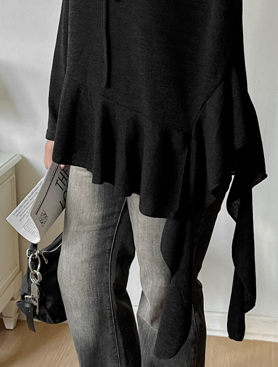 Hooded Unbalance Frill Hood T-shirt
