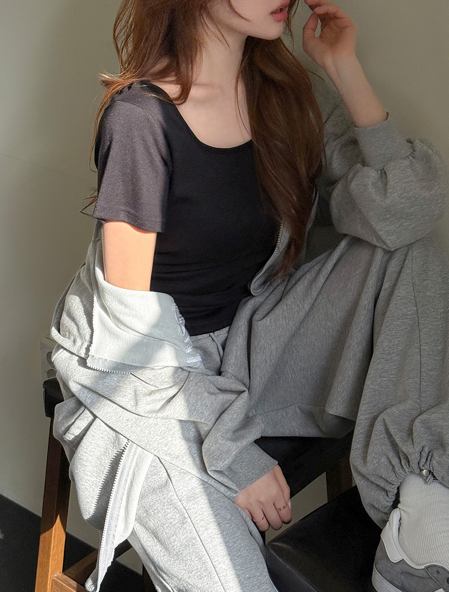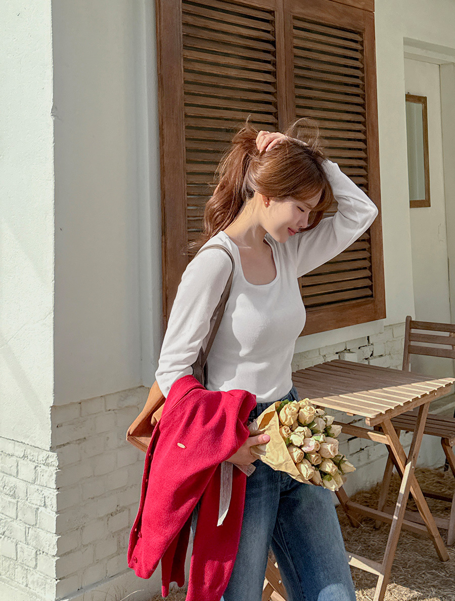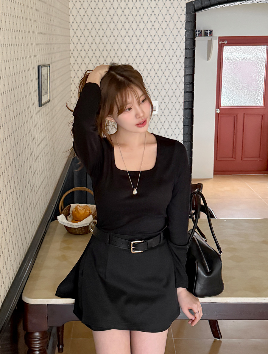 [EVELLET] Diob Square Neck Rolled T-shirt by Length