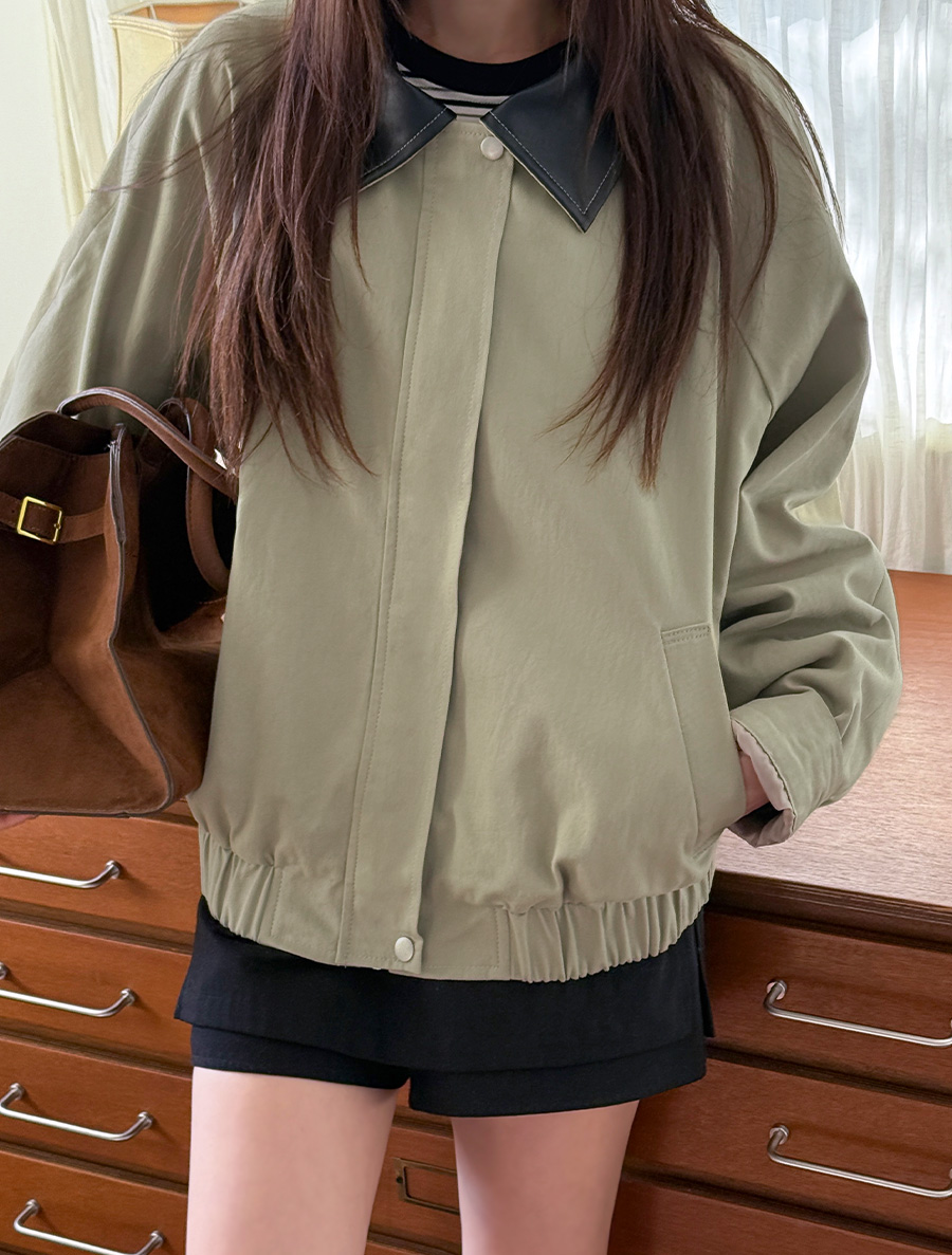 Revha Leather Collar Blue Jacket