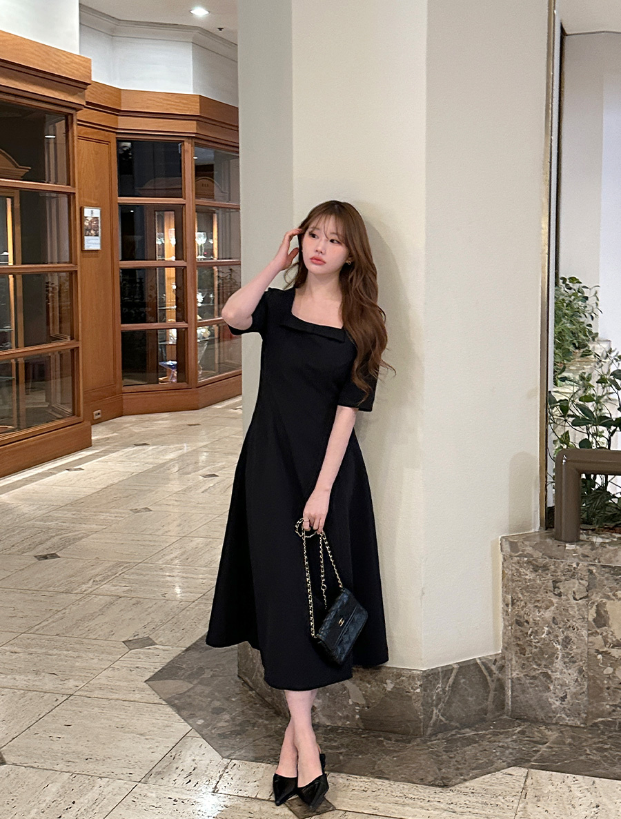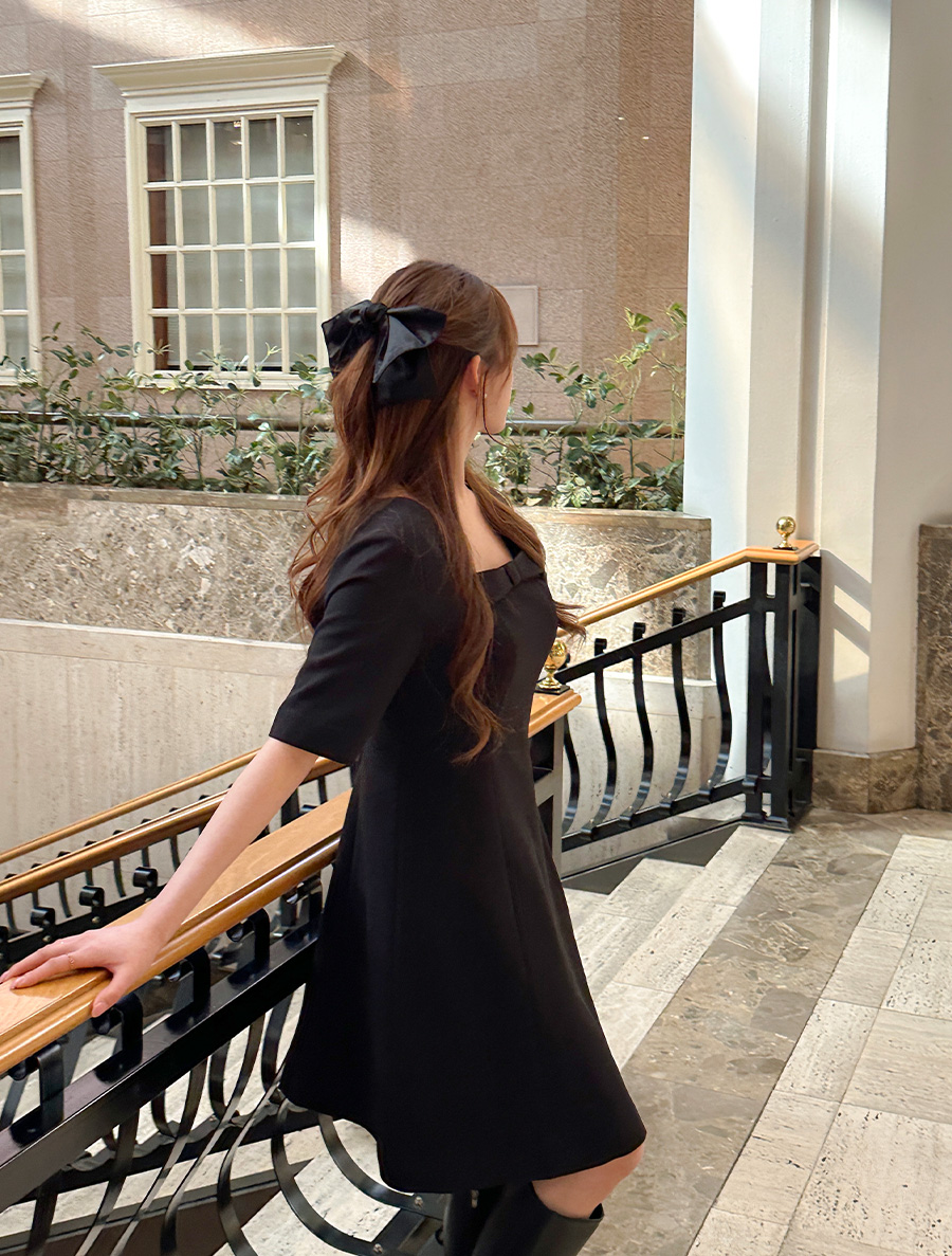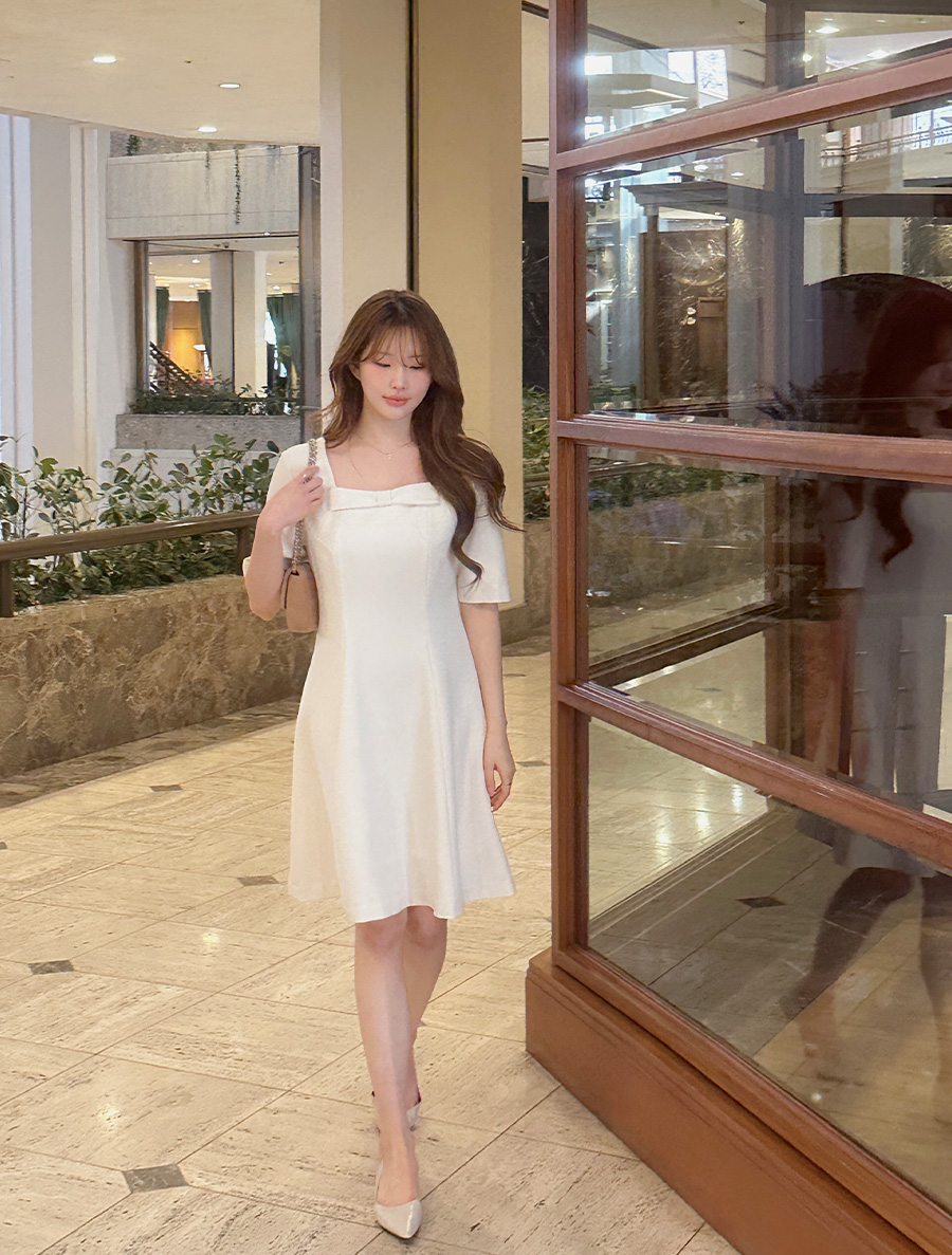 [EVELLET] Liqueur Length Bowknot Flare Dress