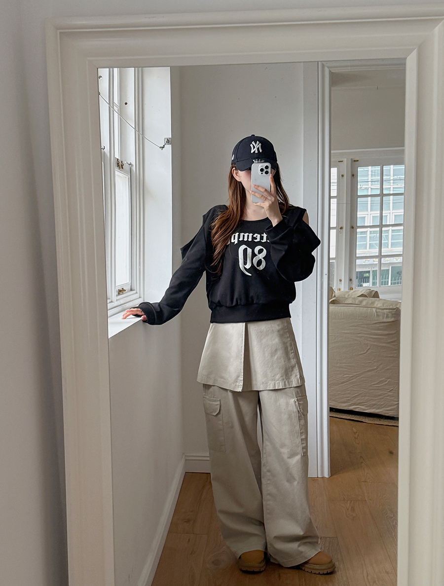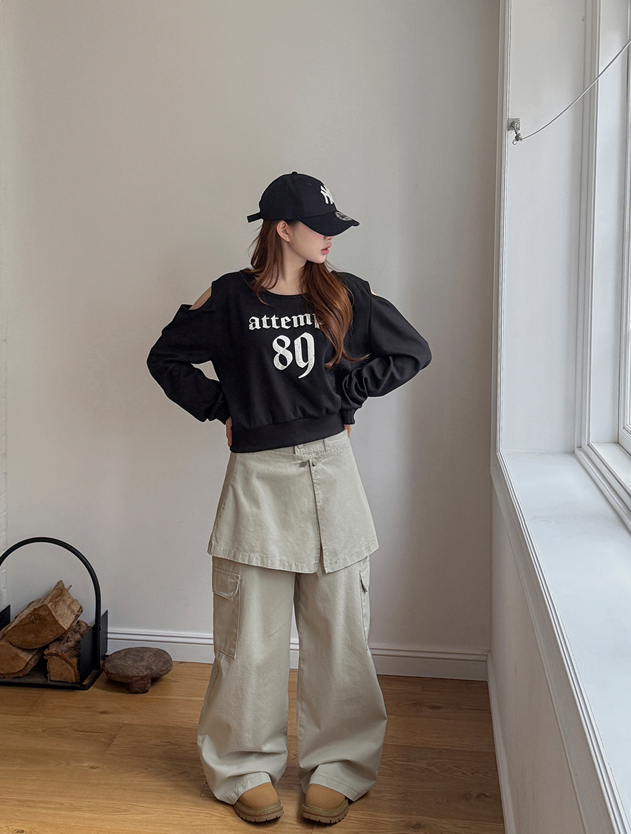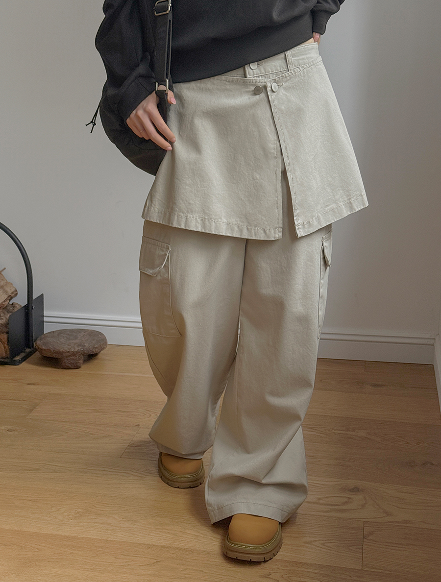 Etuma Cotton Wrap Skirt Cargo Pants SET