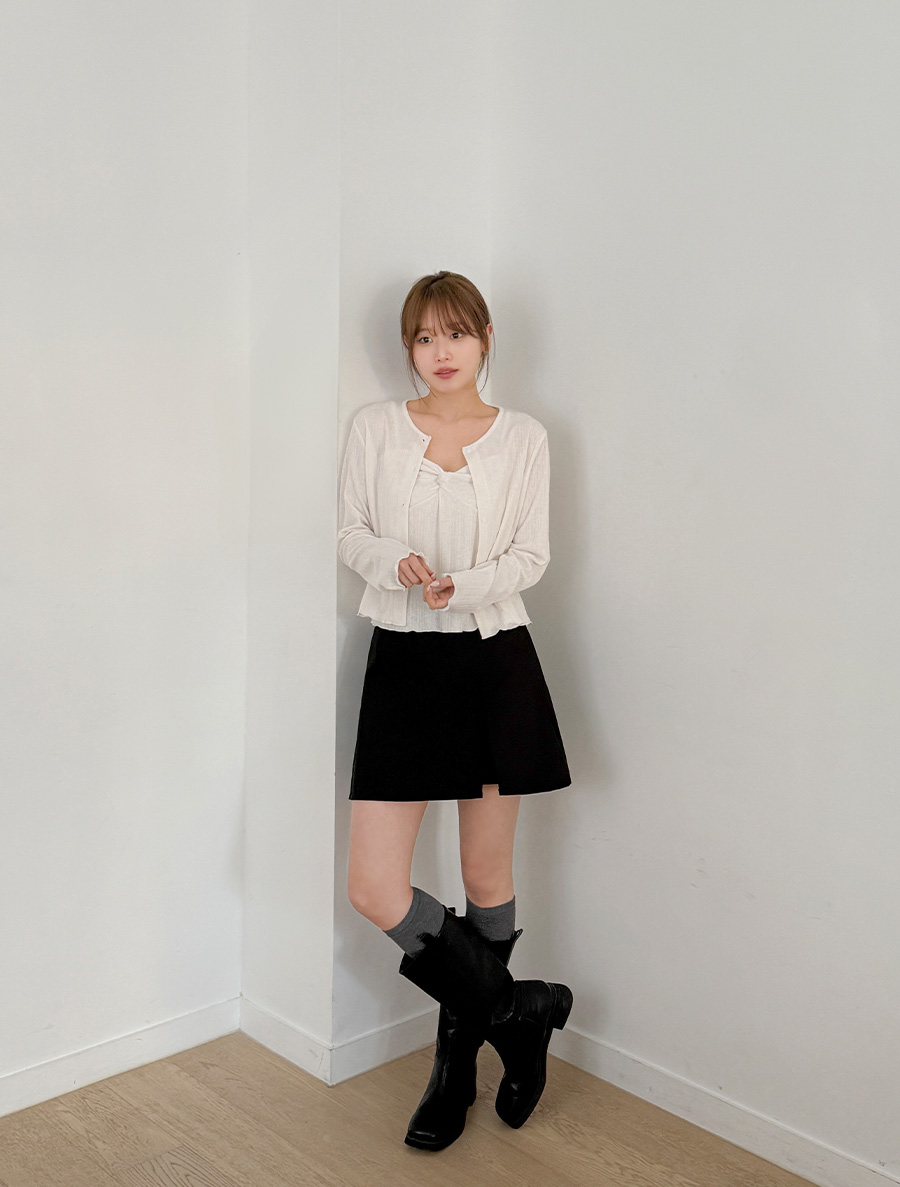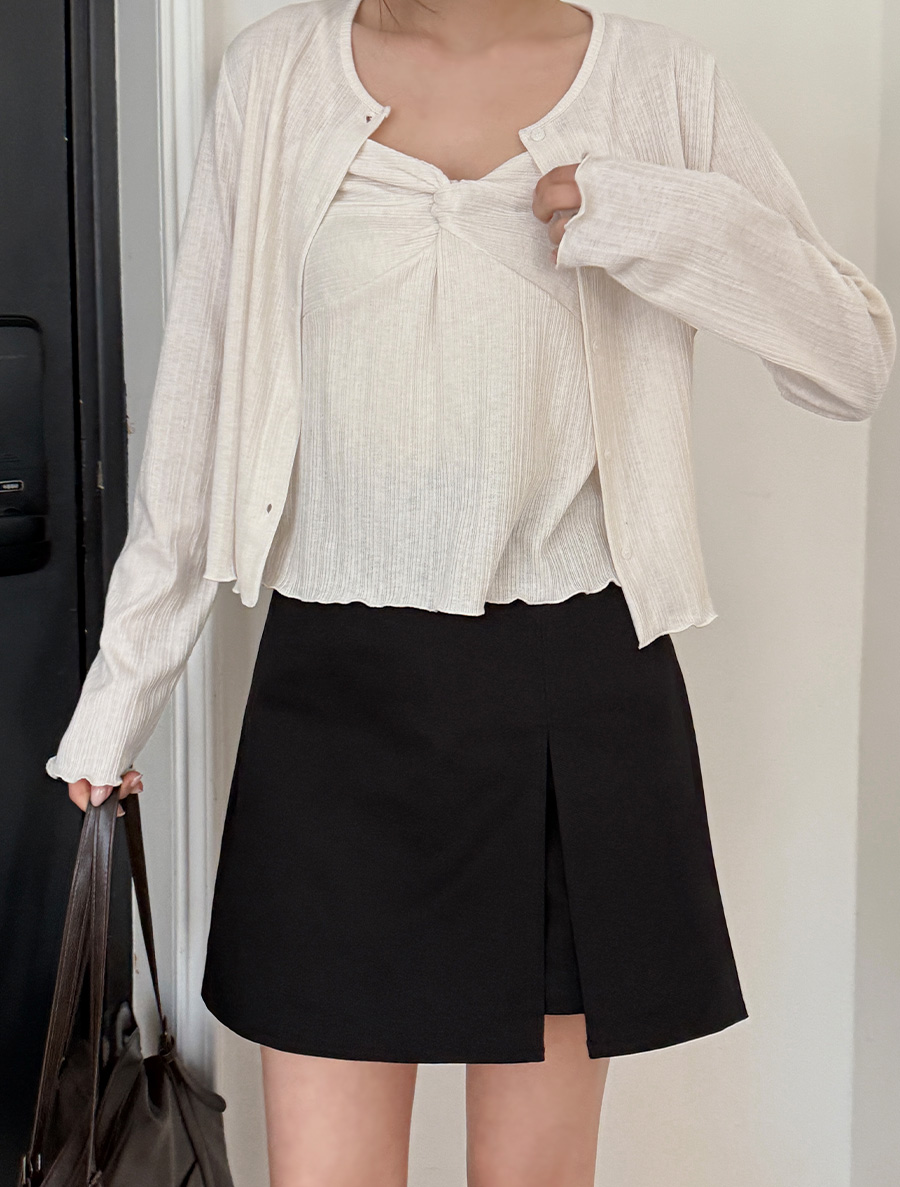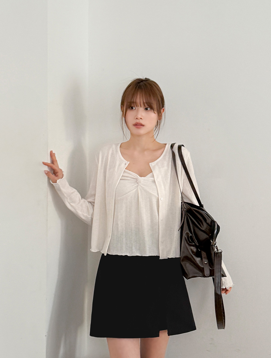Hodian Ribbed Wave Bowknot Sleeveless Cardigan SET