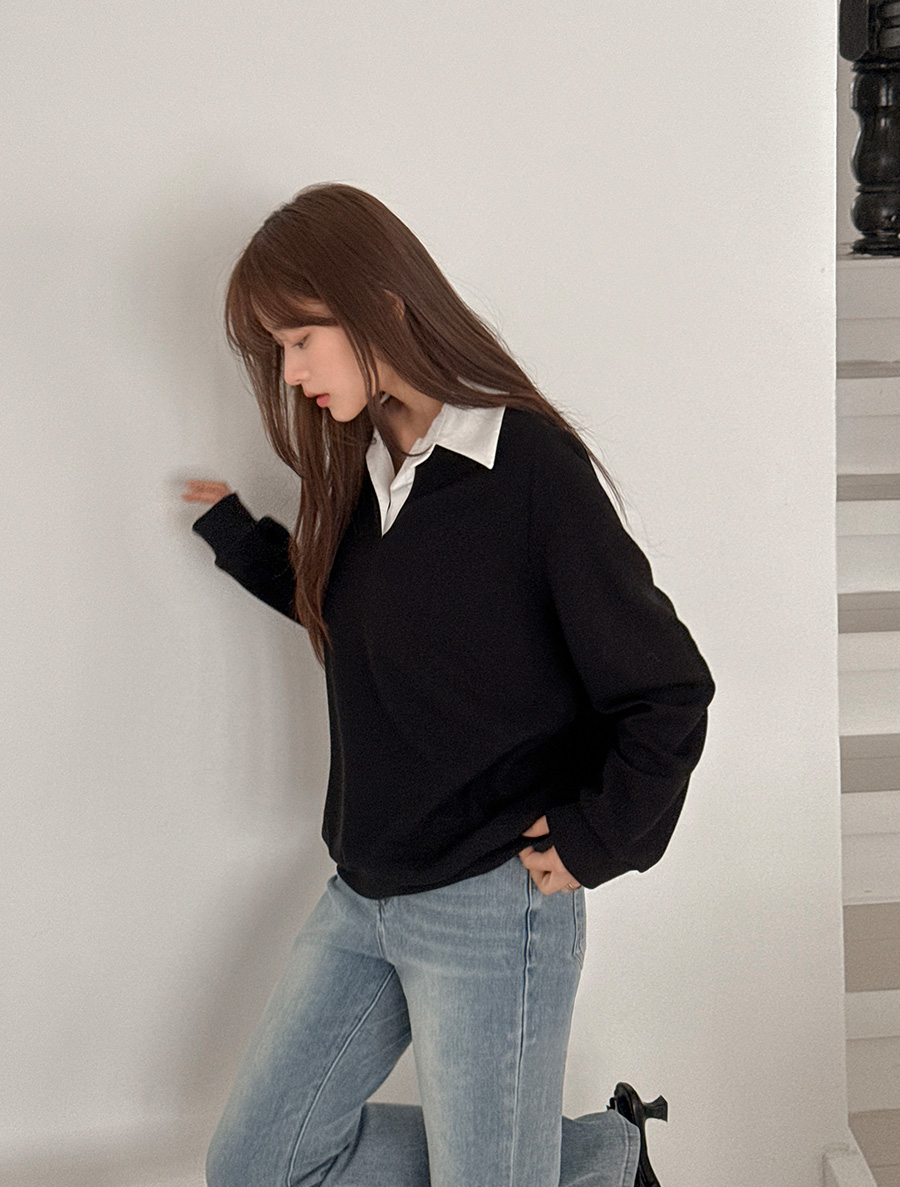 Denotti Contrast Collar Sweatshirt