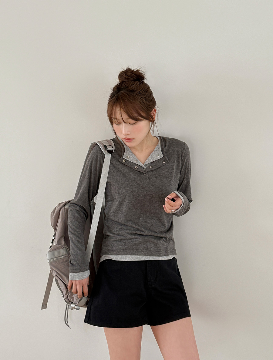 Deaf Contrast layered button T-shirt