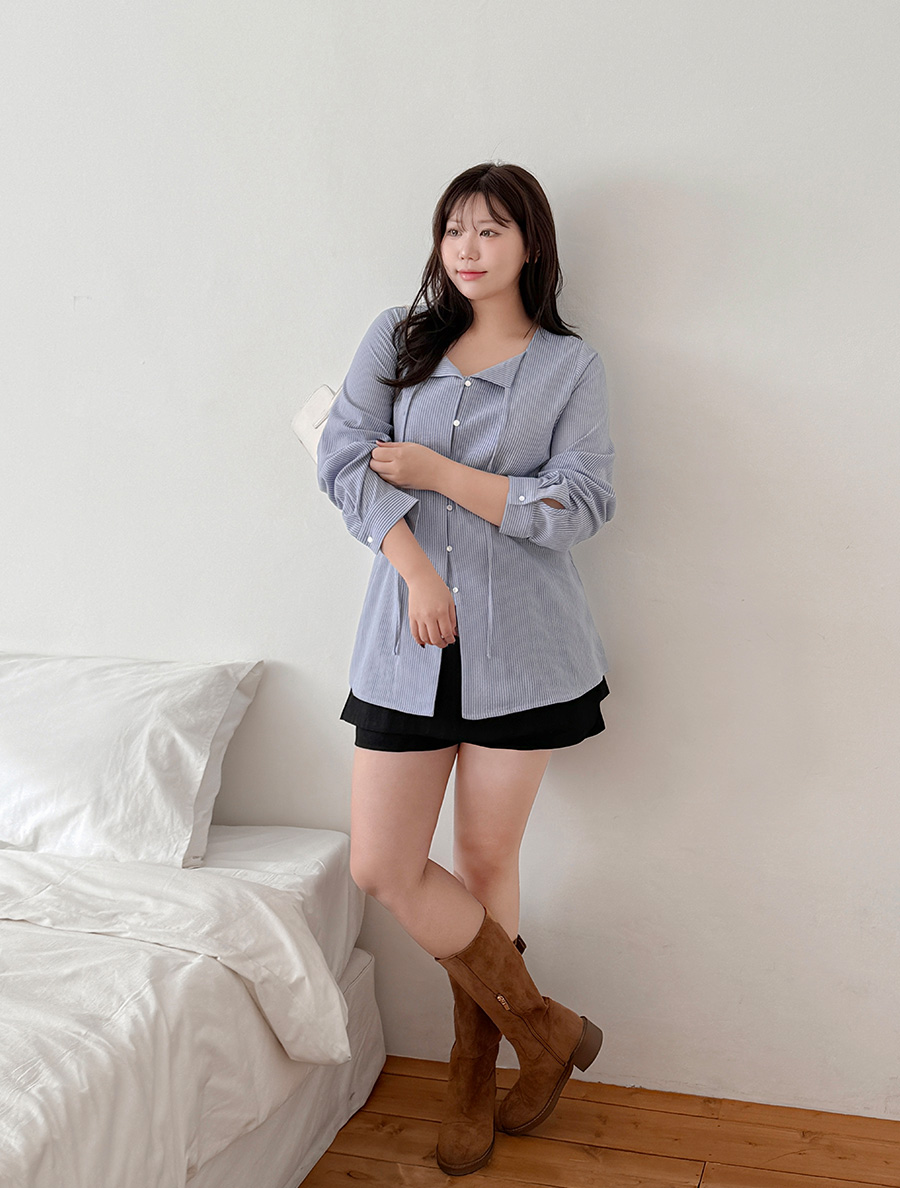 Dokren Strap Button Long Blouse