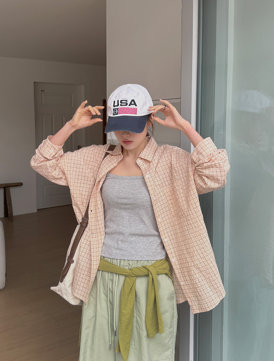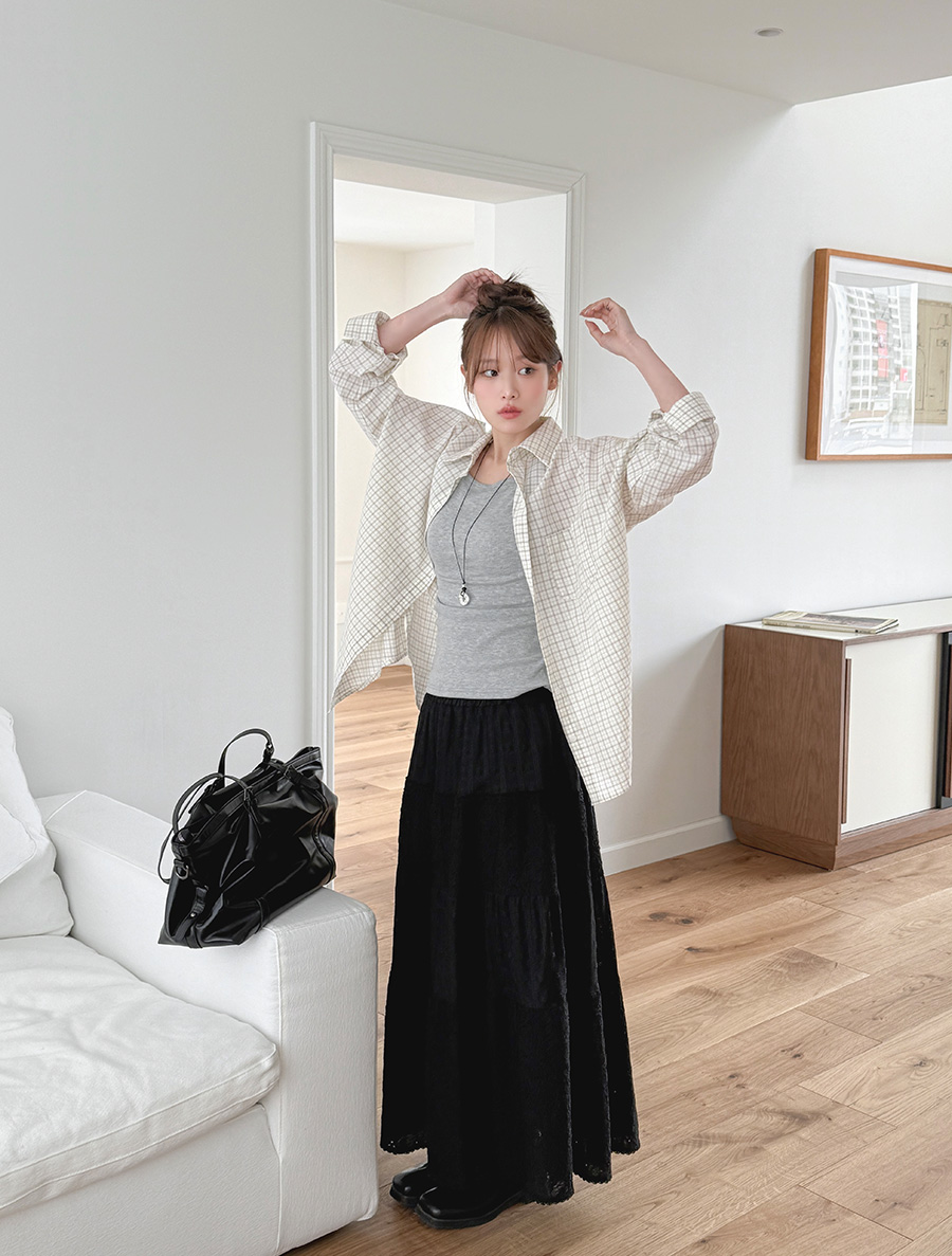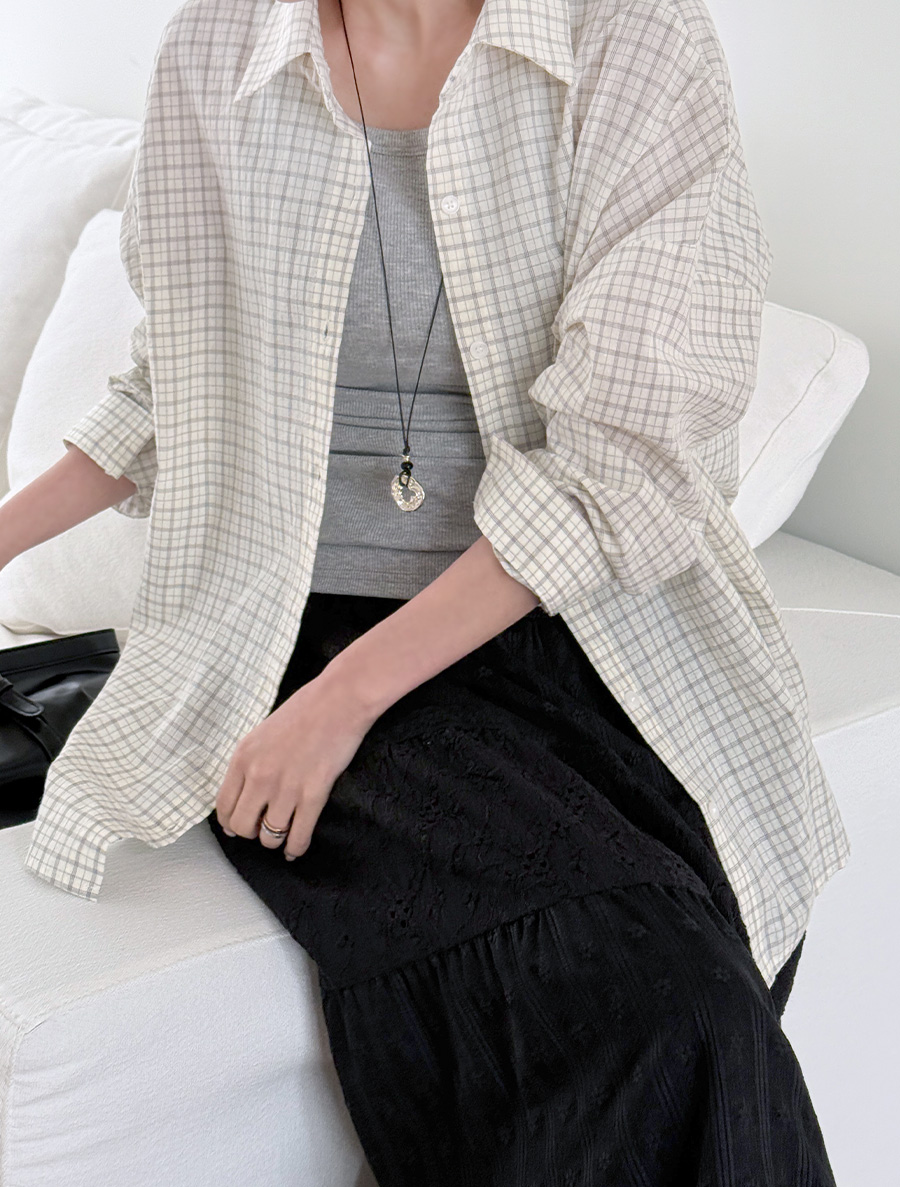 Porabe Plaid Check Collar Unbalance Shirt