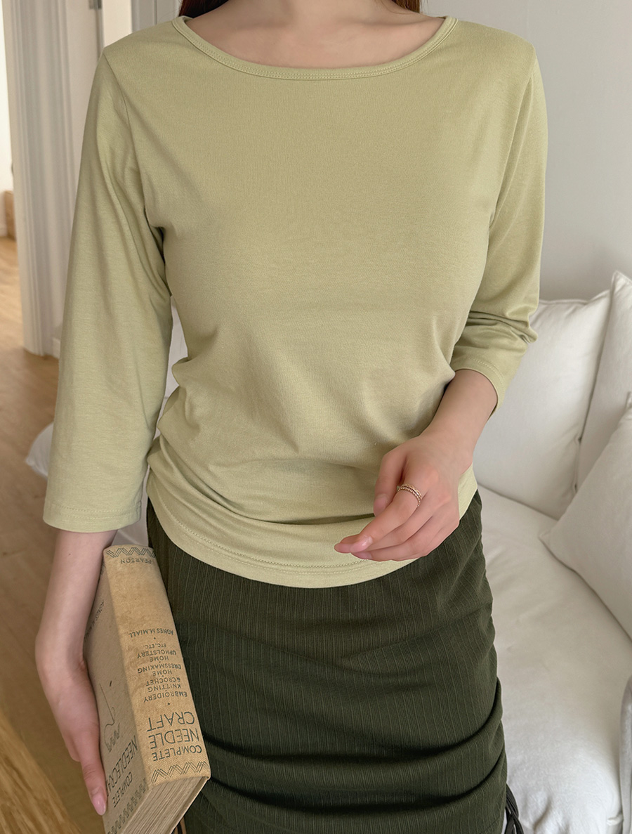 [EVELLET] Shade Boat Neck Stretchy Modal Span Cropped Sleeve Tee