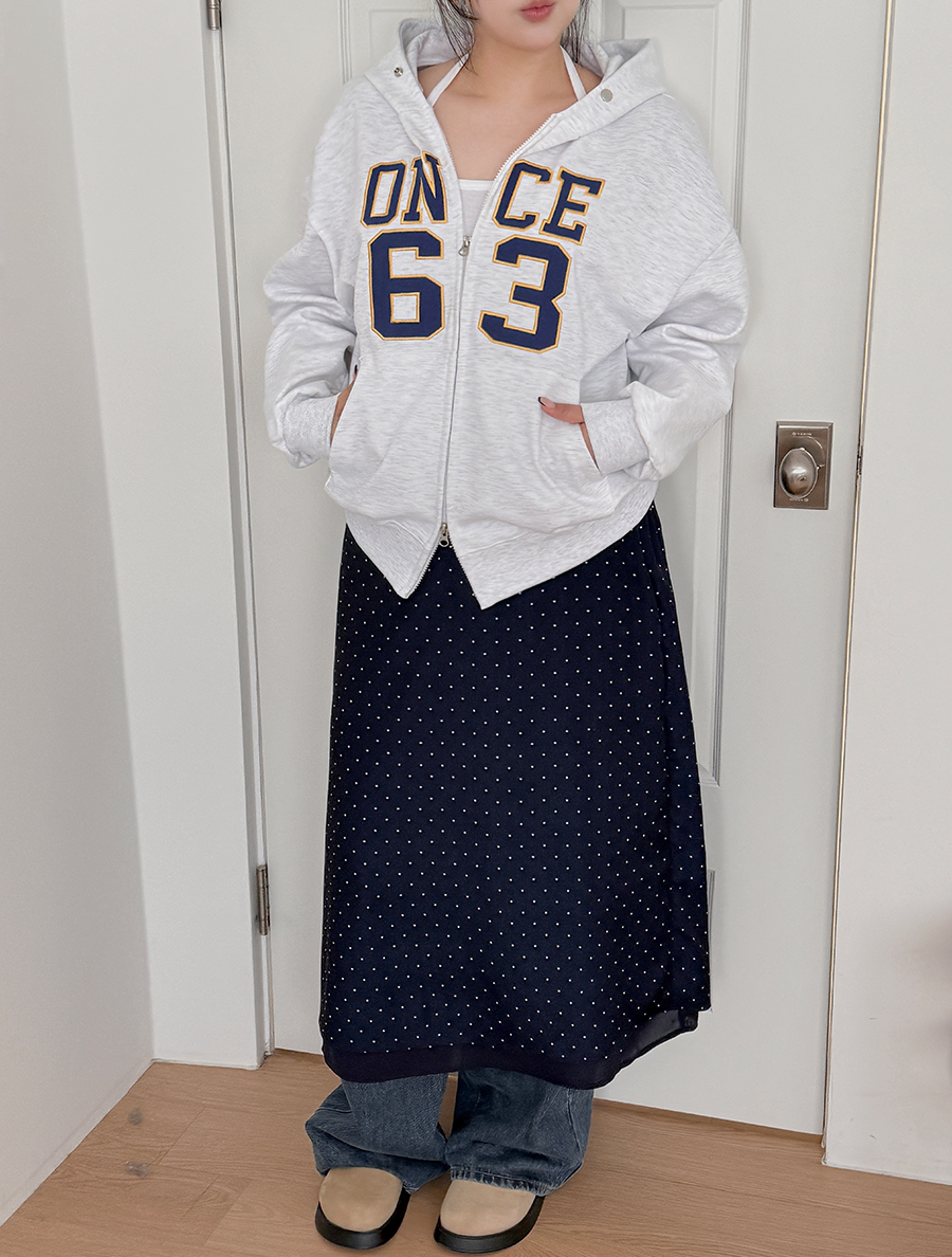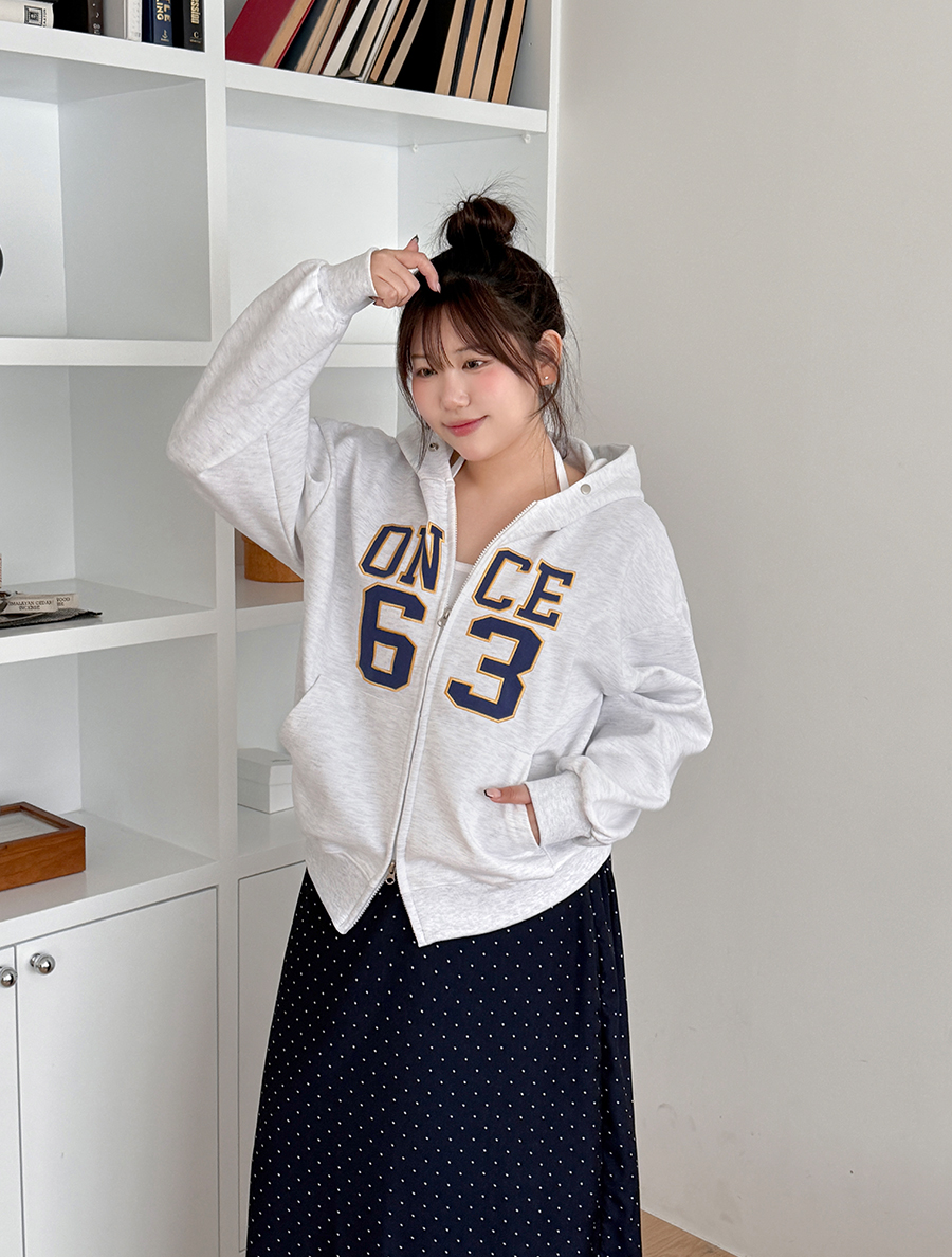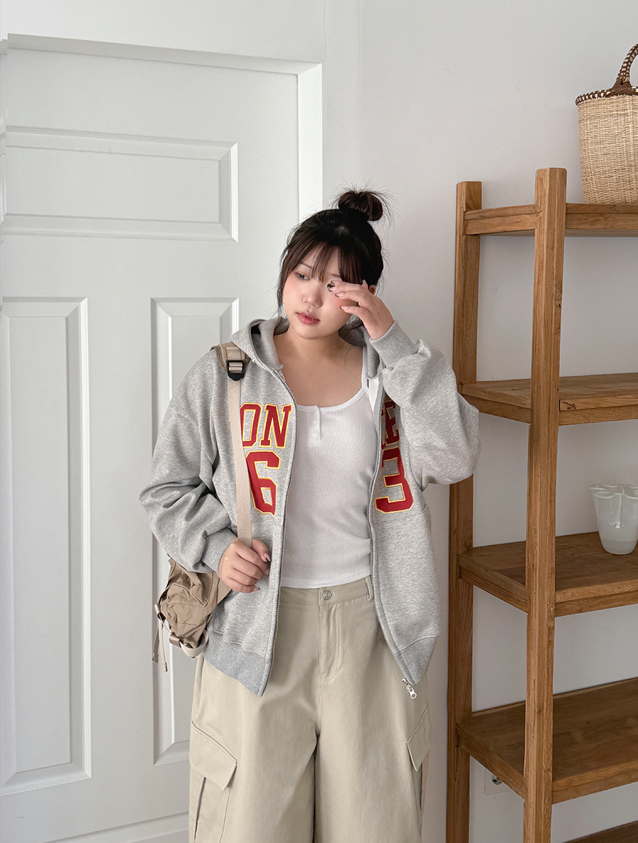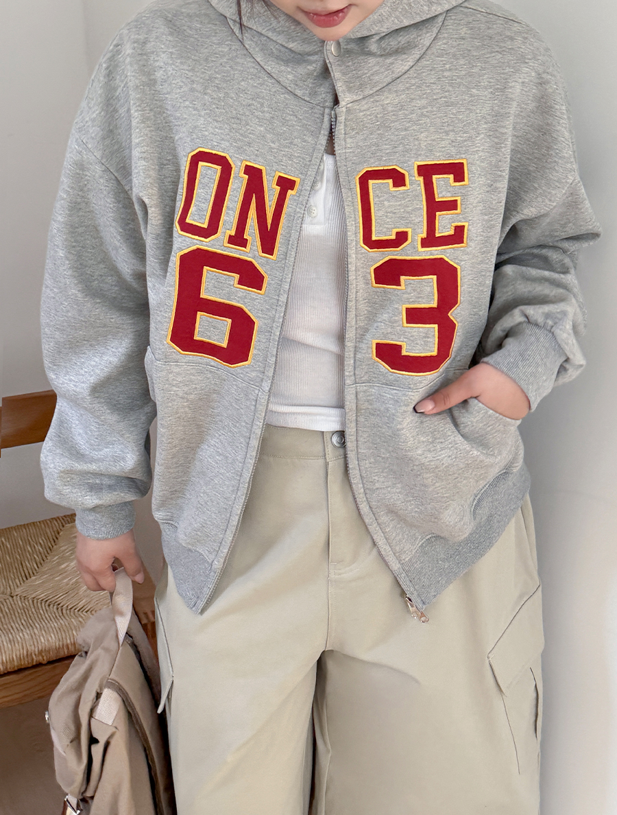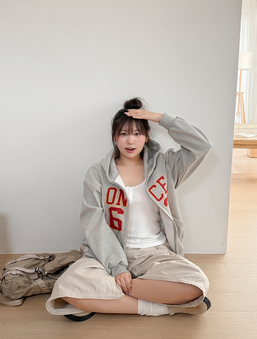 Hertef embroidery two-way hood zip up