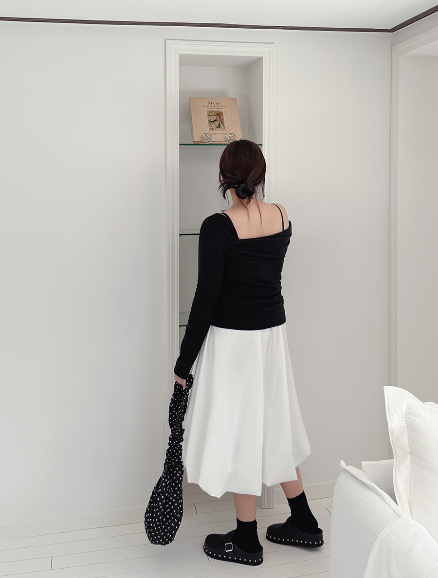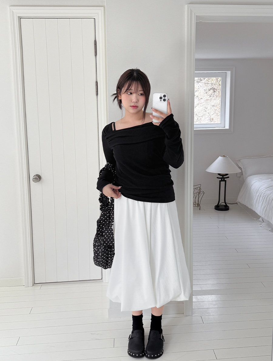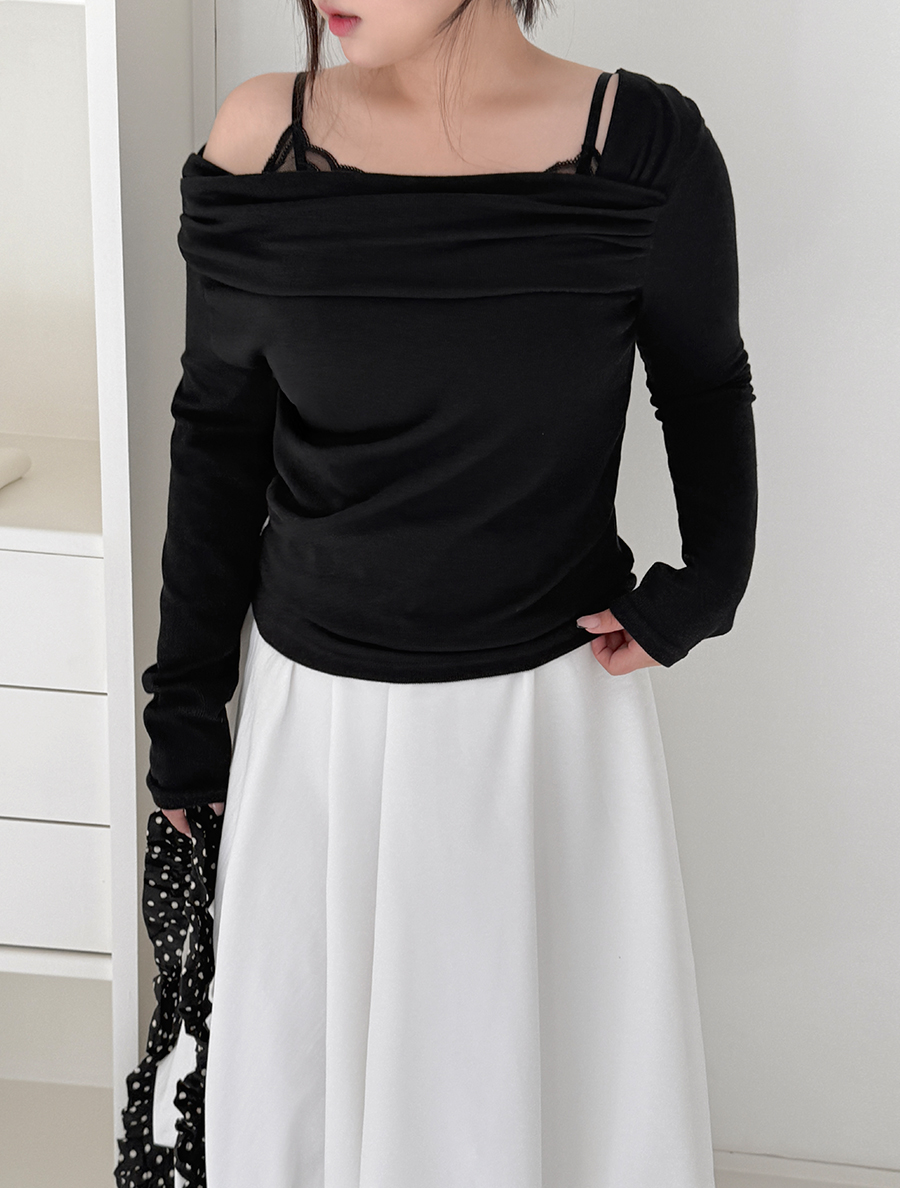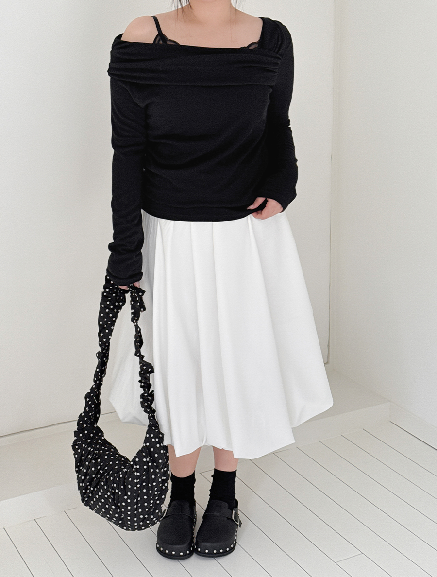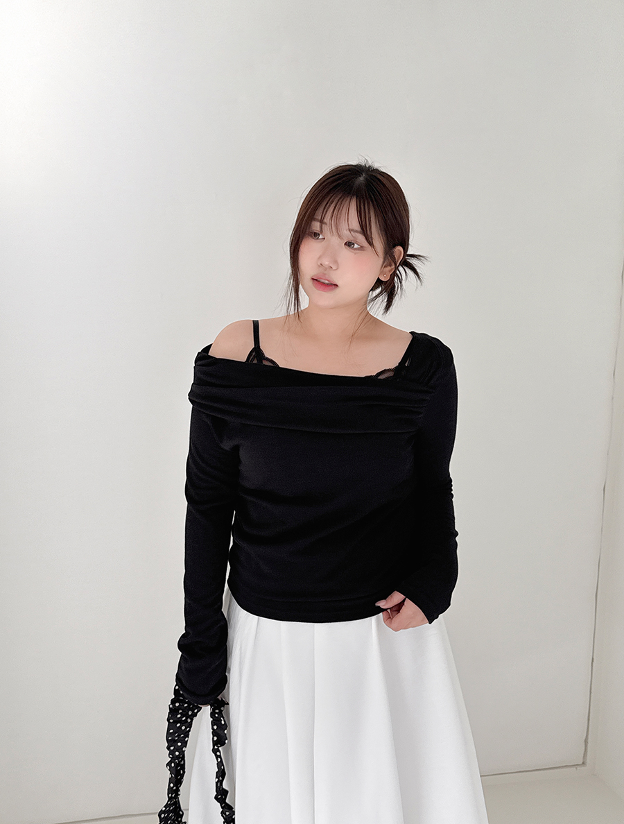 Puebel Ribbed Unbalance Off shoulder T-shirt