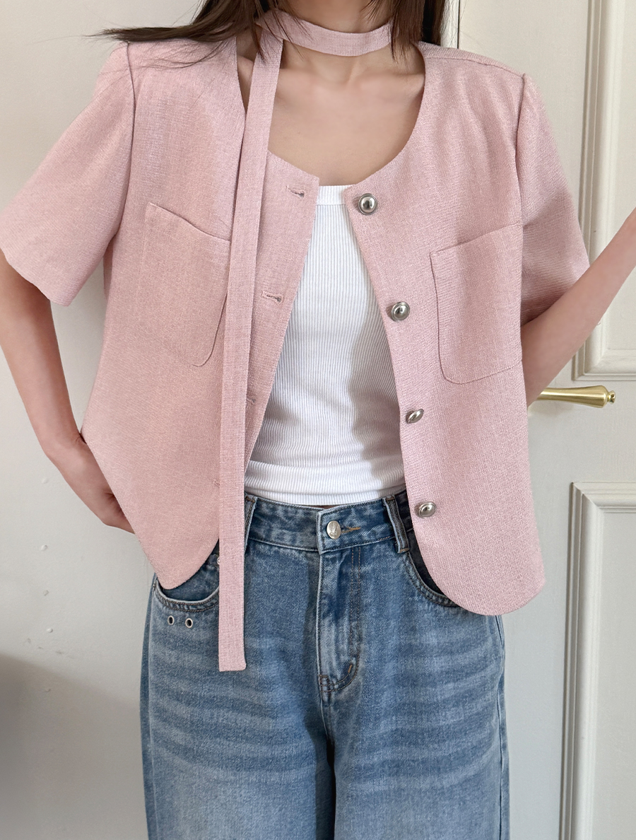 [EVELLET] Kokoru Tie Set No Collar Tweed Jacket