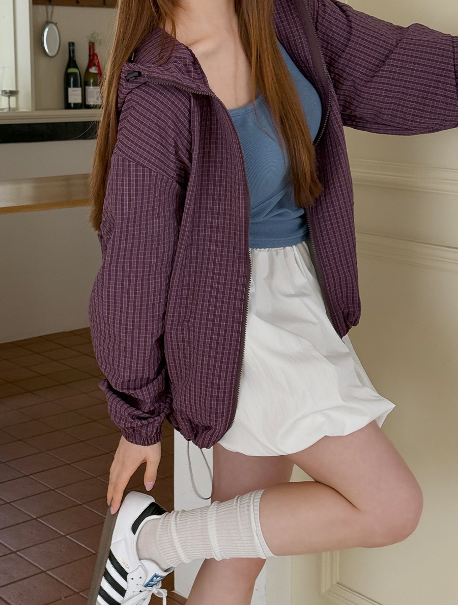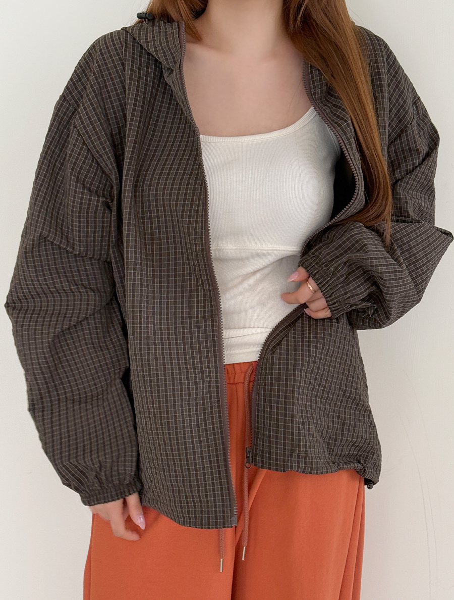 Pdian Plaid Check string Hood Wind Jumper