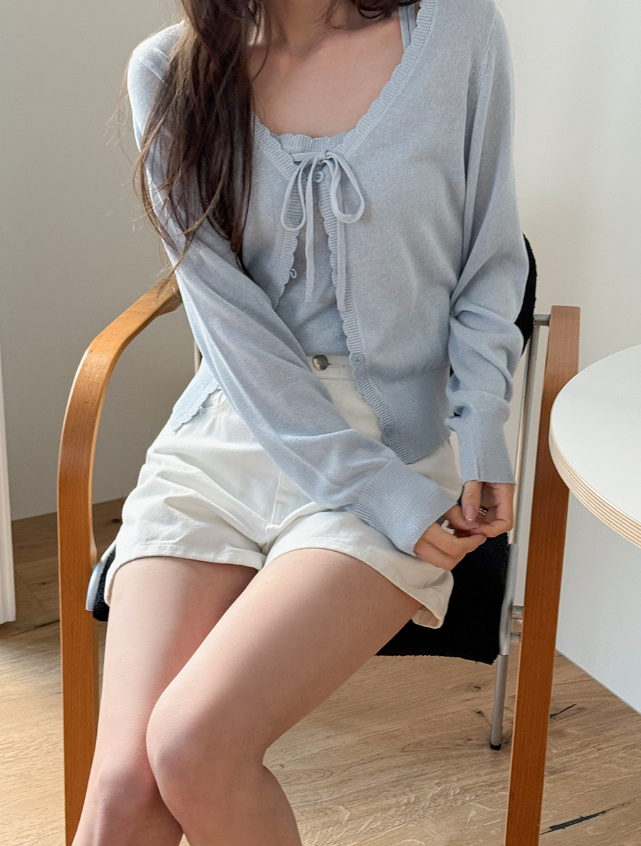 [EVELLET] Hatana Lyocell Knit Sleeveless Cardigan SET