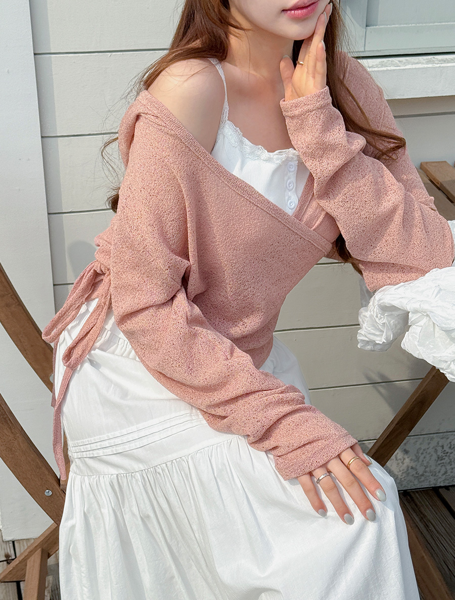 [EVELLET] Butinen Wrap Hood Bowknot Cardigan