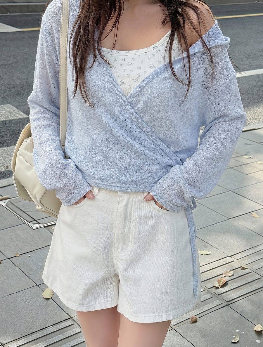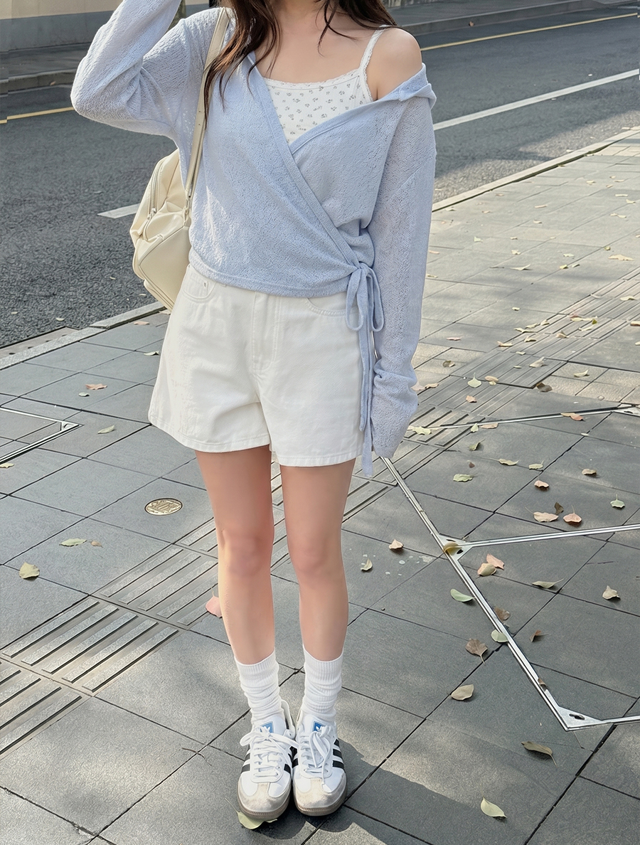 [EVELLET] Butinen Wrap Hood Bowknot Cardigan