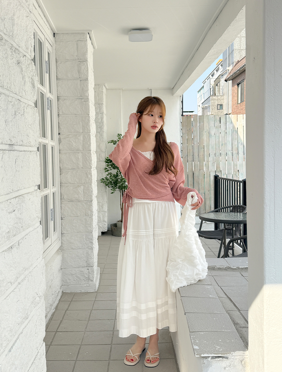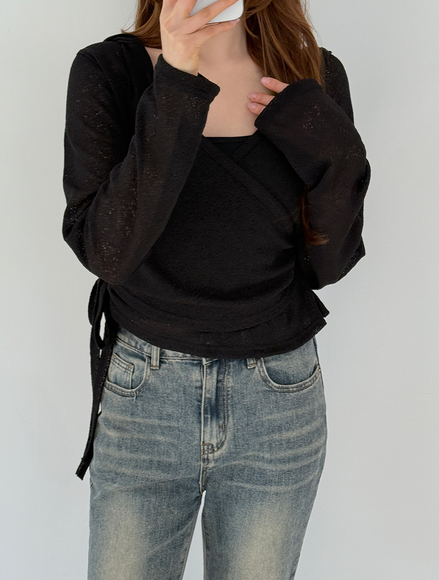 [EVELLET] Butinen Wrap Hood Bowknot Cardigan