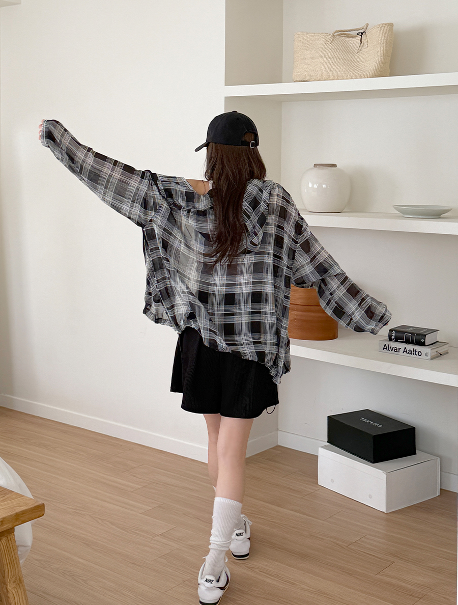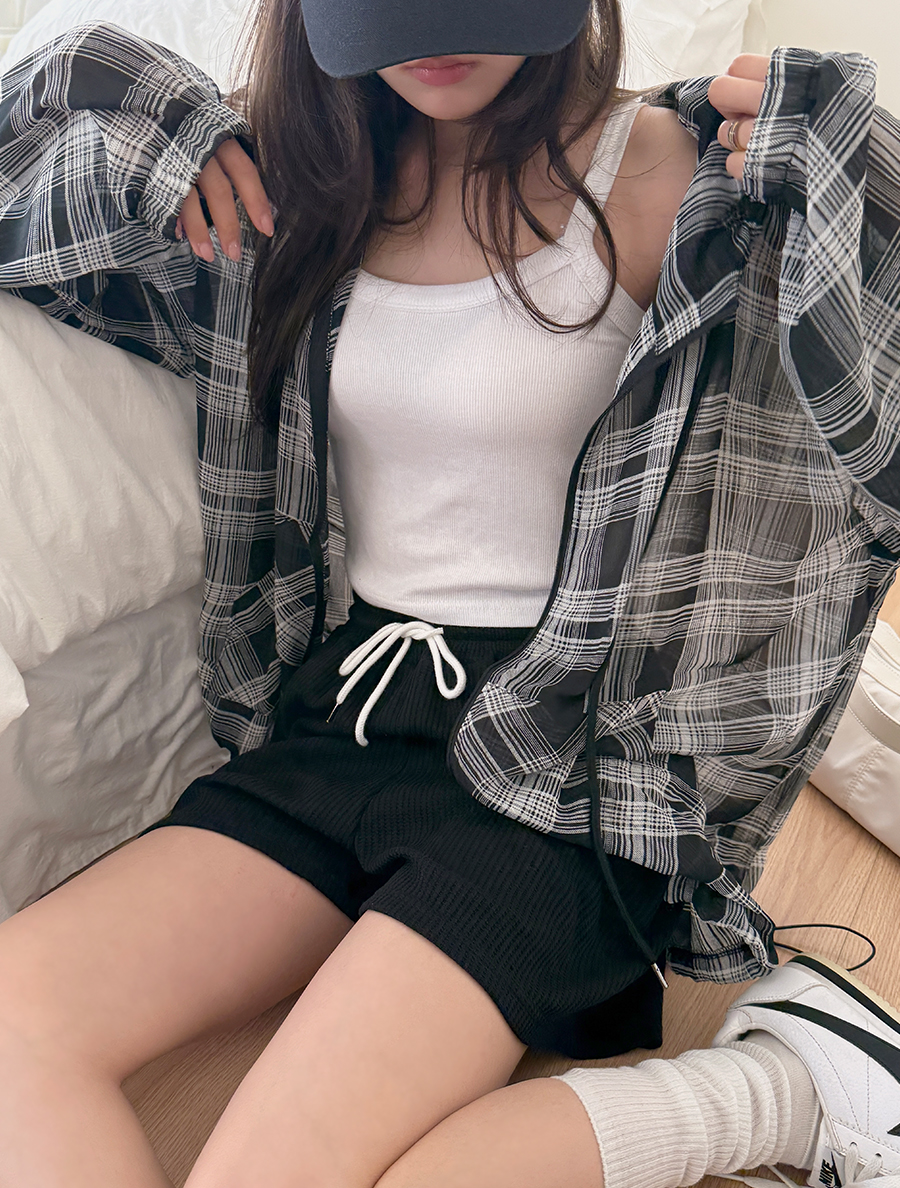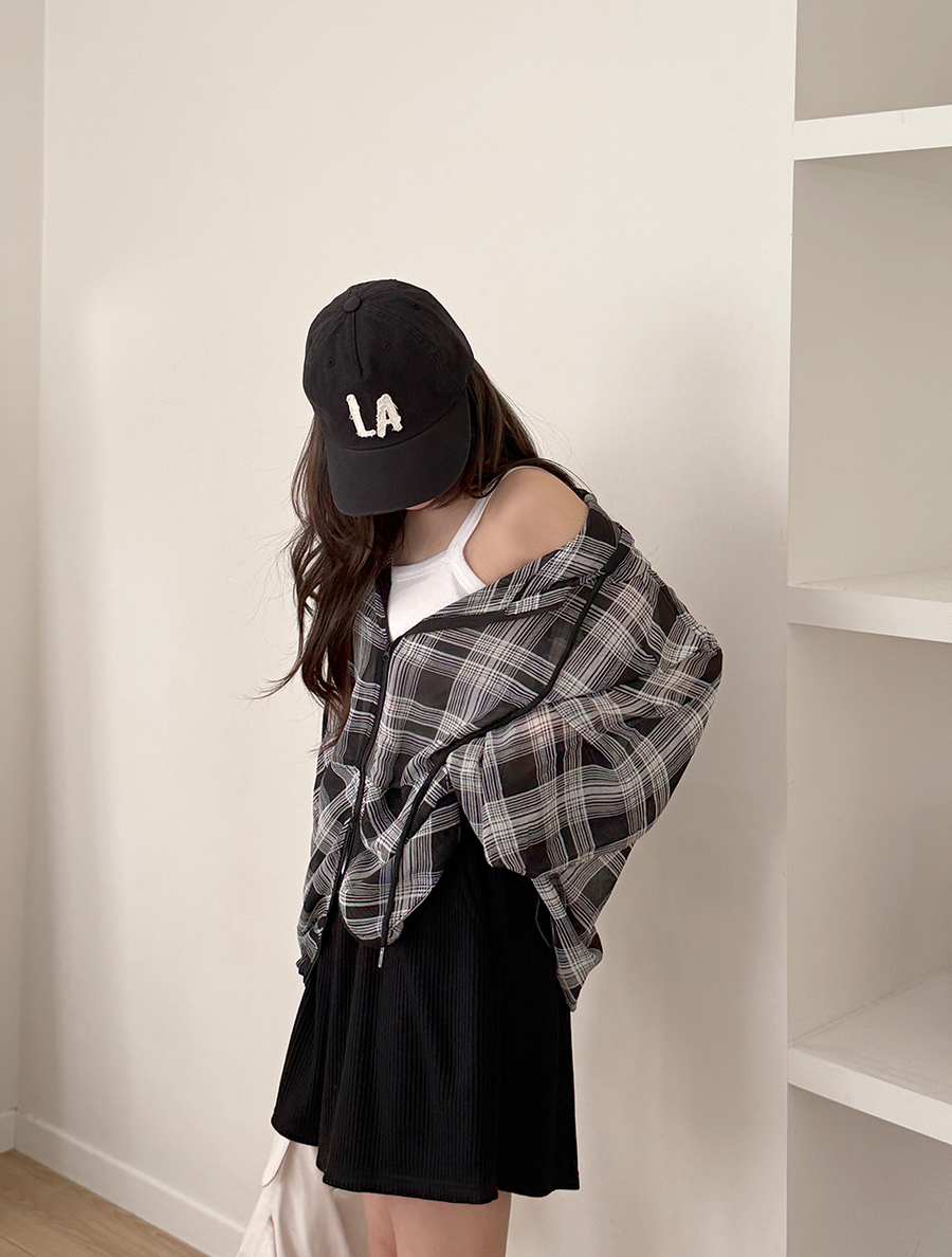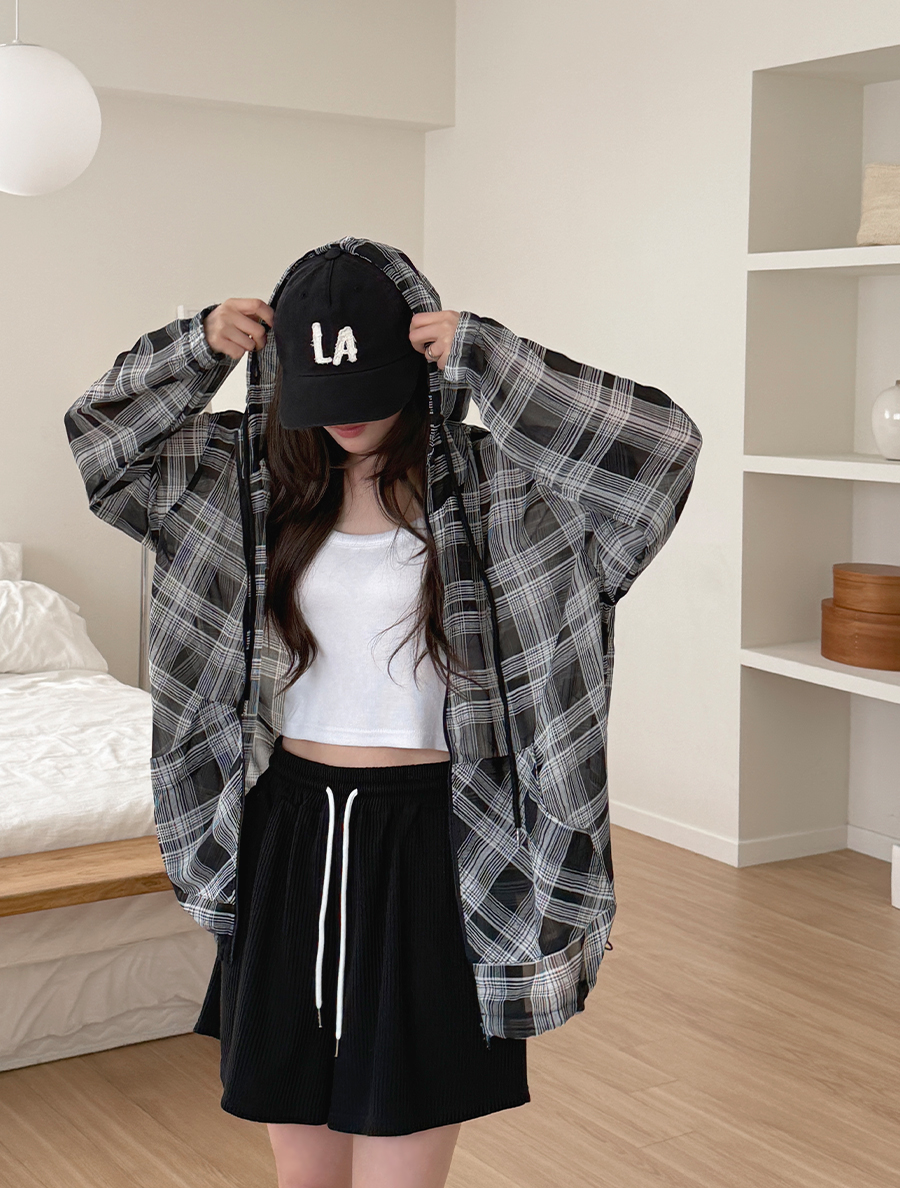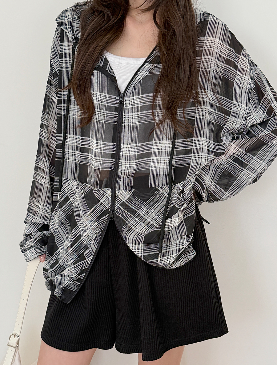 Lemuir Plaid Check two-way See-through look Zip up Hoodies