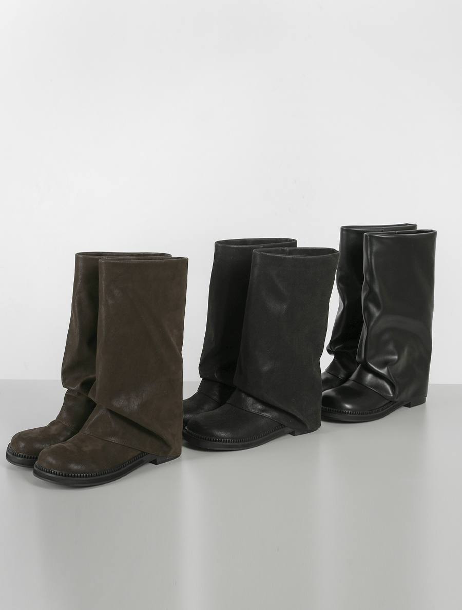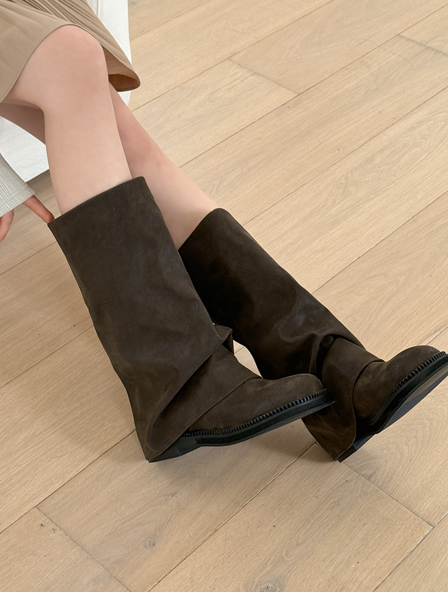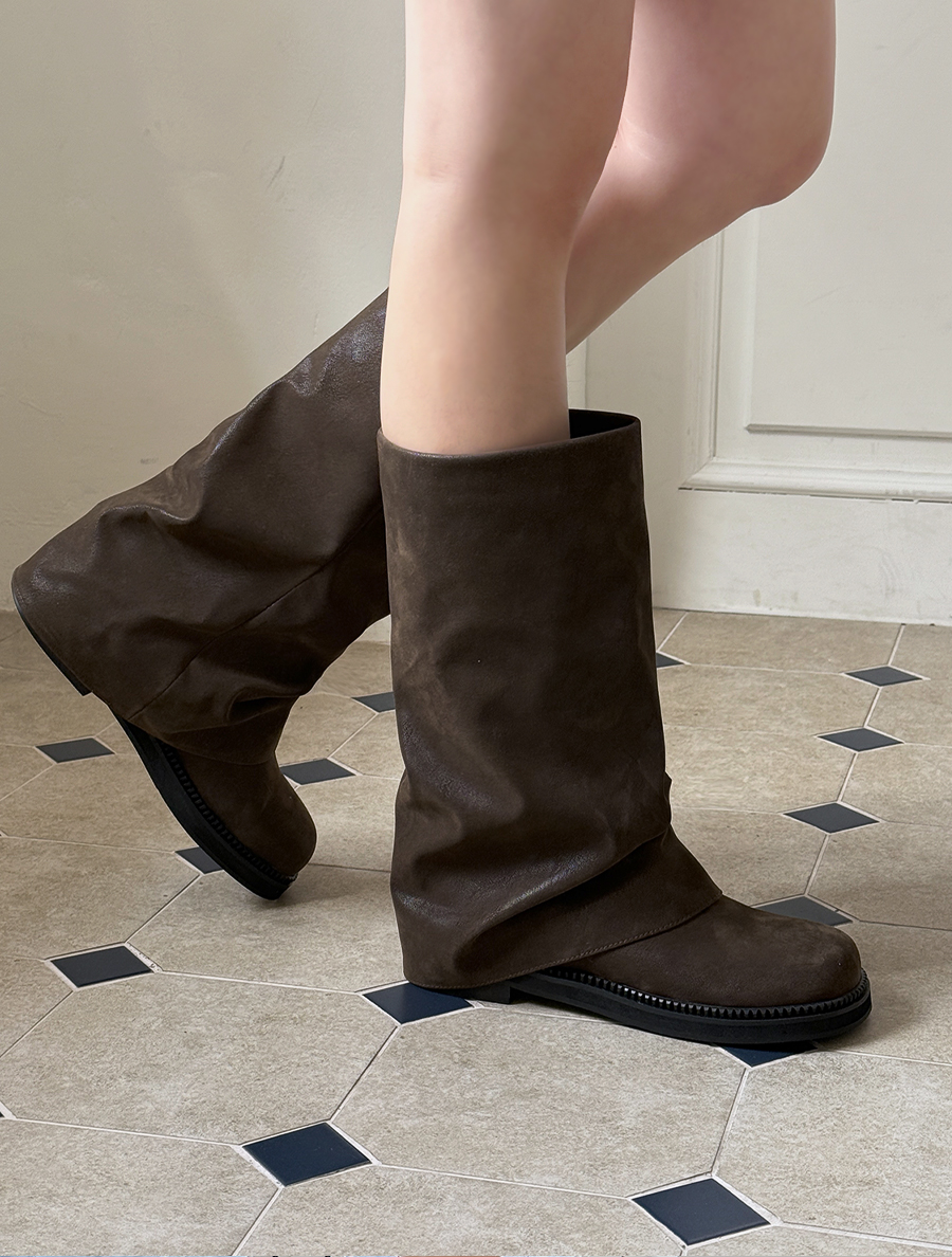 Mofha Leather Folding Middle-length Boots (3.5cm)
