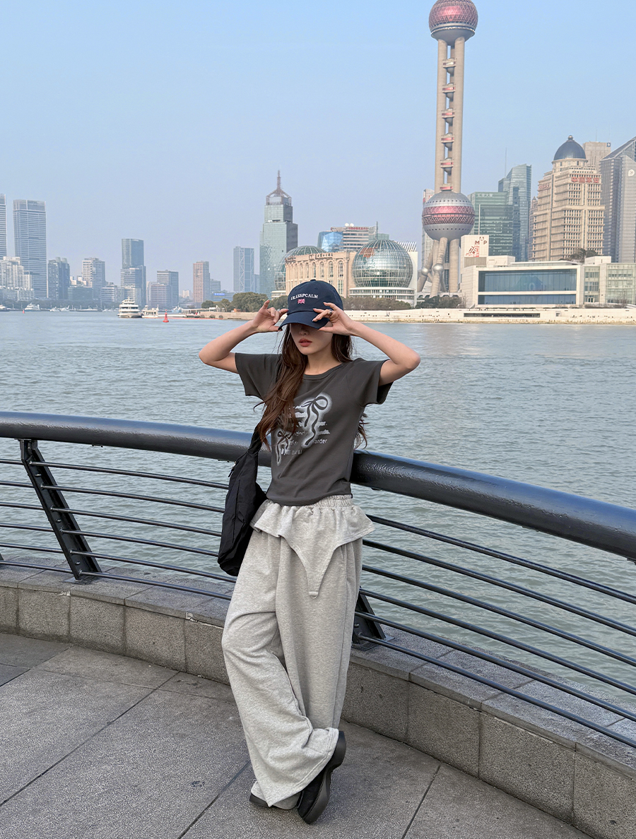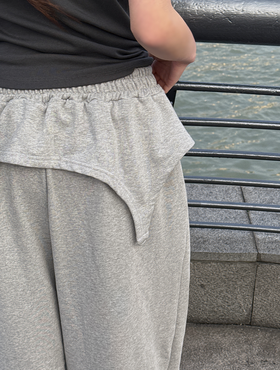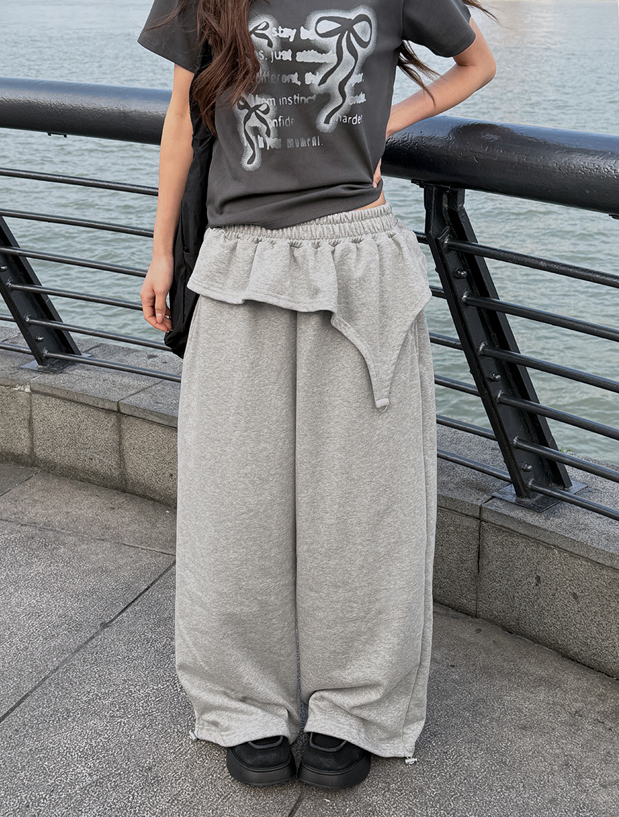 Tuipe Terry Dring Unbalance Frill Waistband Pants