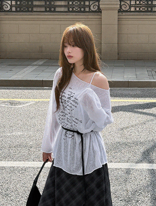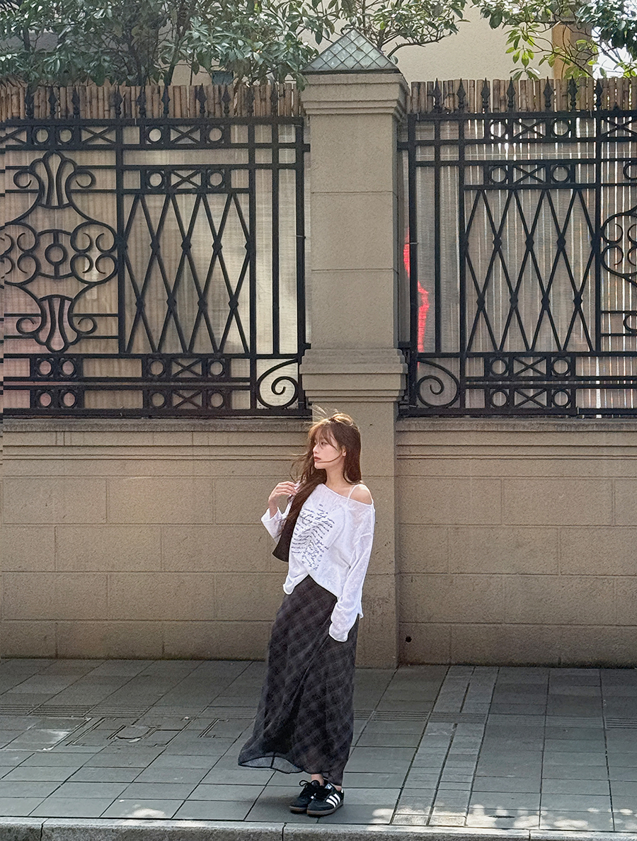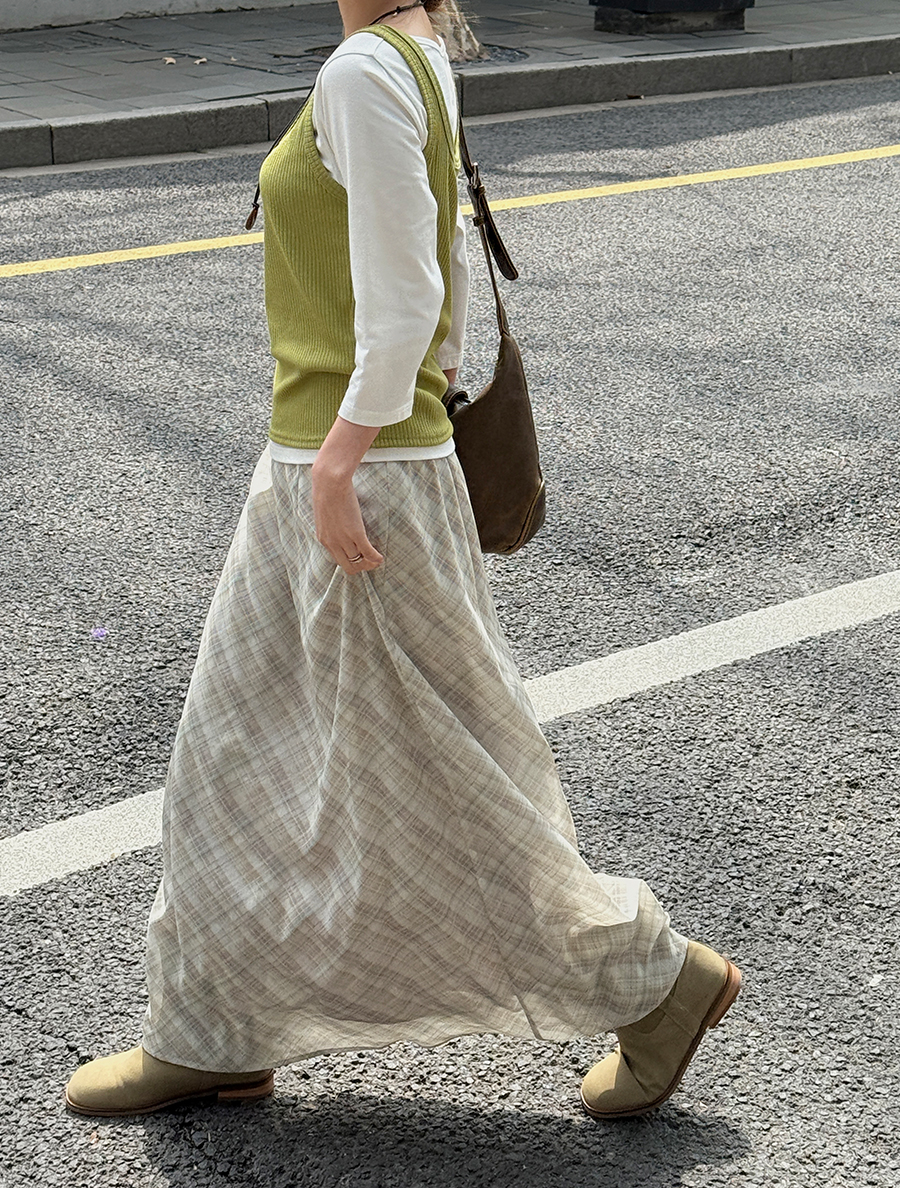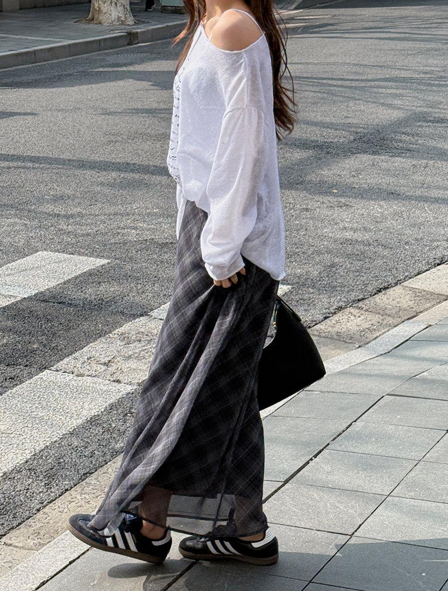 [EVELLET] Sordin Chiffon Plaid Check Maxi Skirt