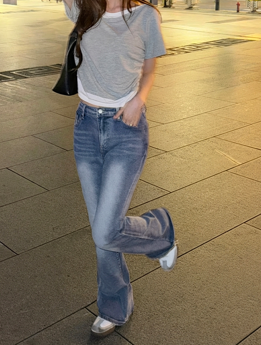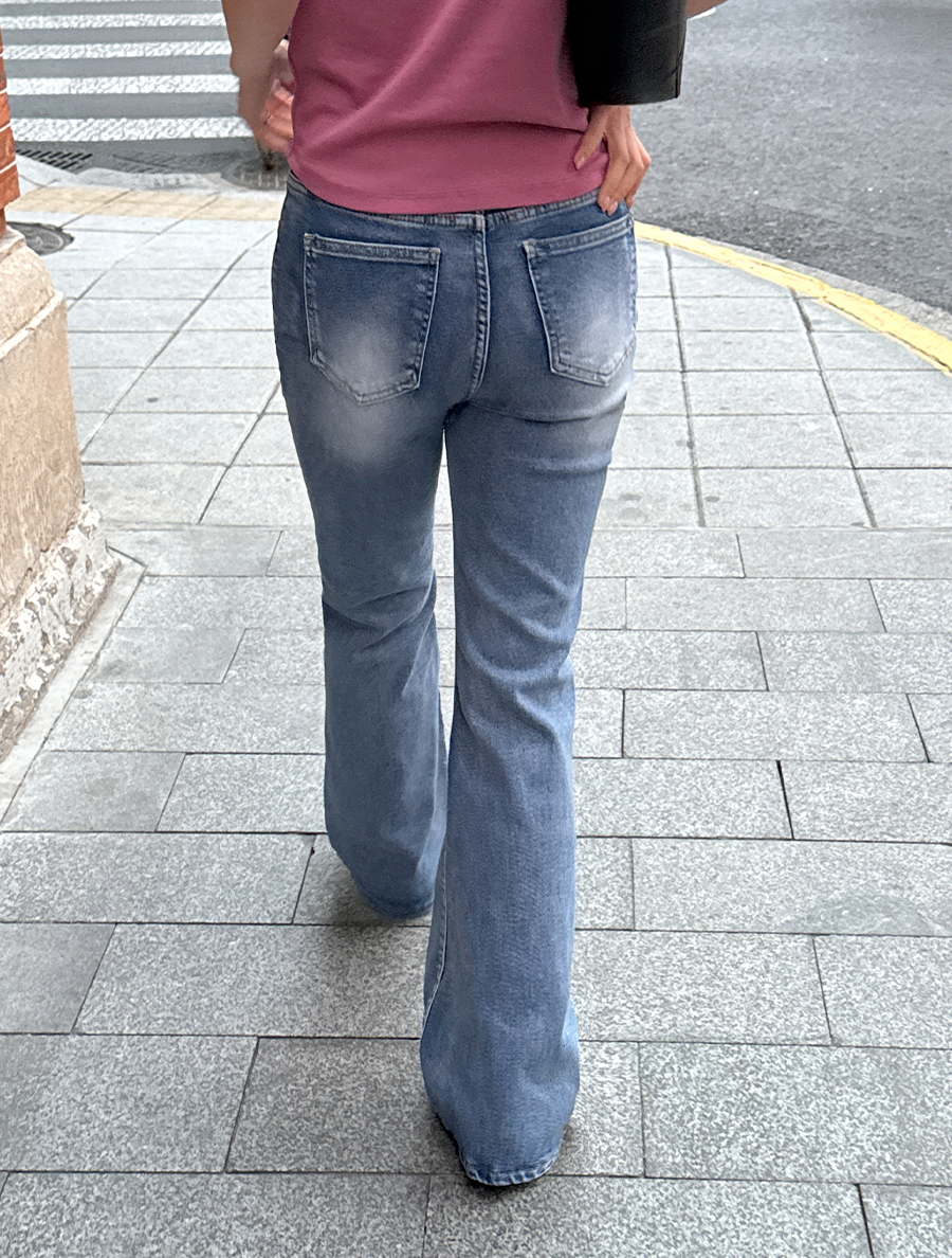 Tonenf Hip Pad Flared Denim Pants by Length
