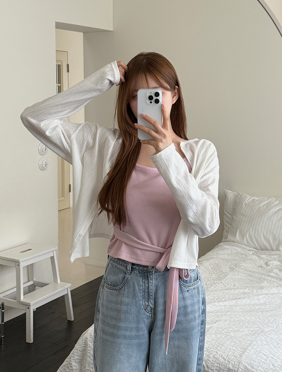 Mudeldi Lace Punching Button Cardigan
