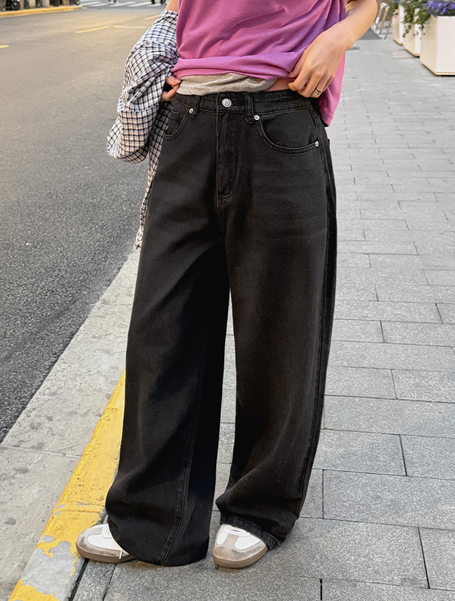 Lefemue Wide Washed Denim Pants by Length