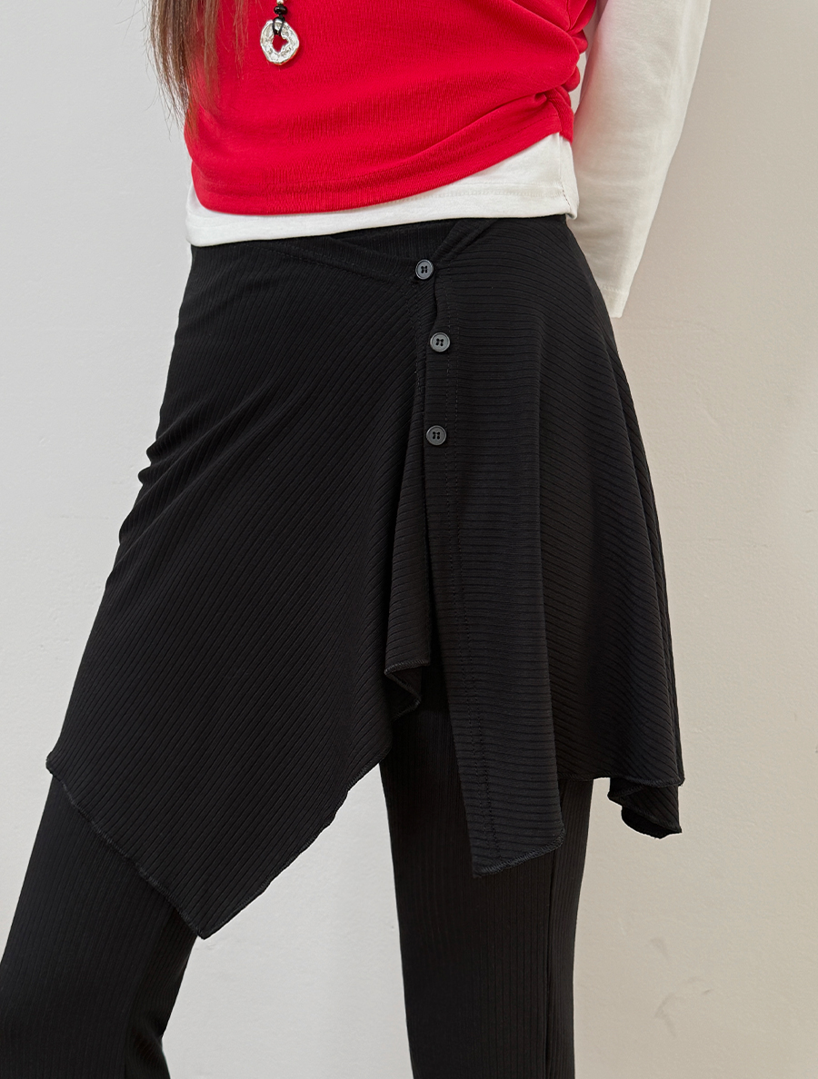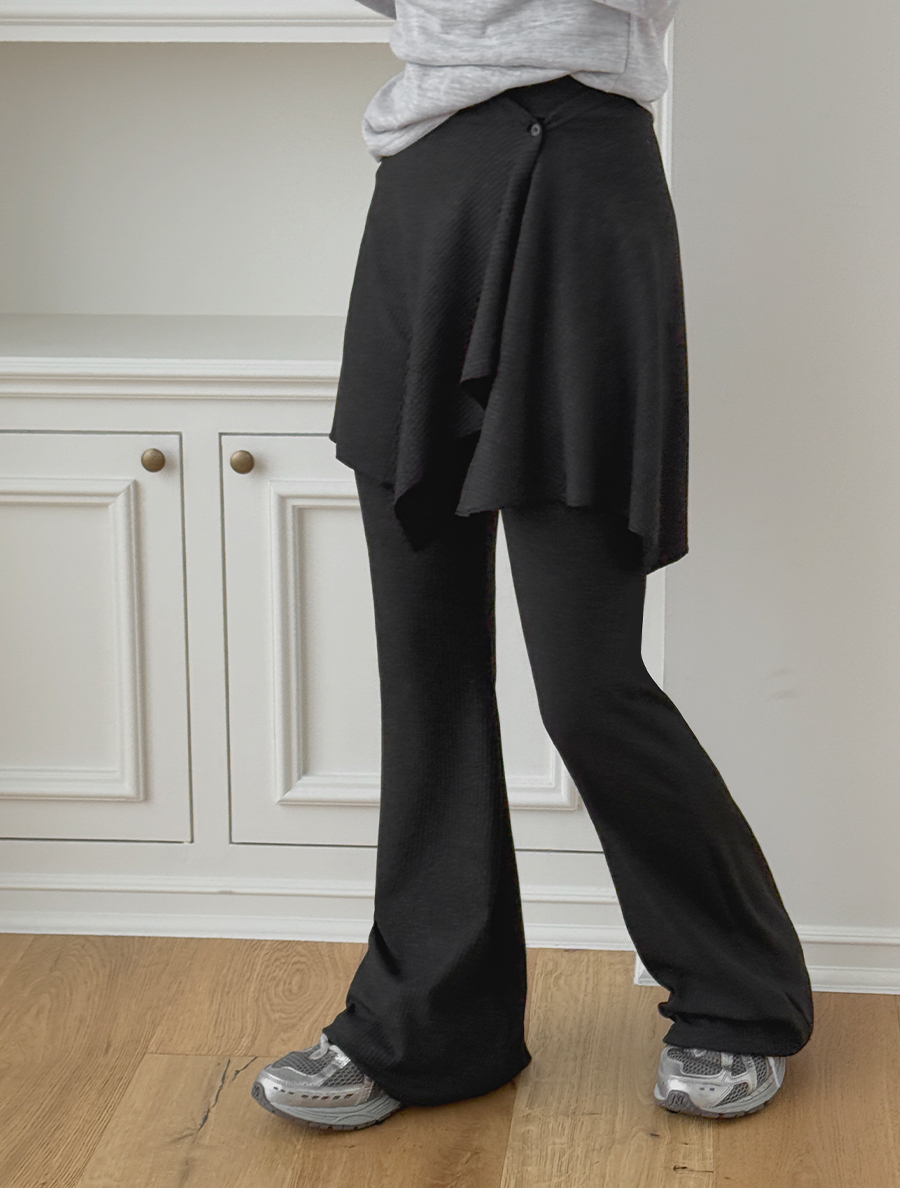 [EVELLET] Terde Unbalance Wrap Skirt Set Flared Waistband Pants