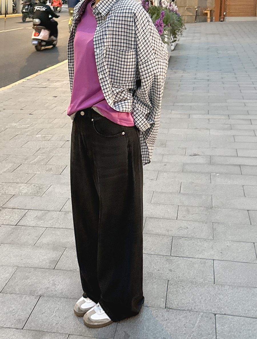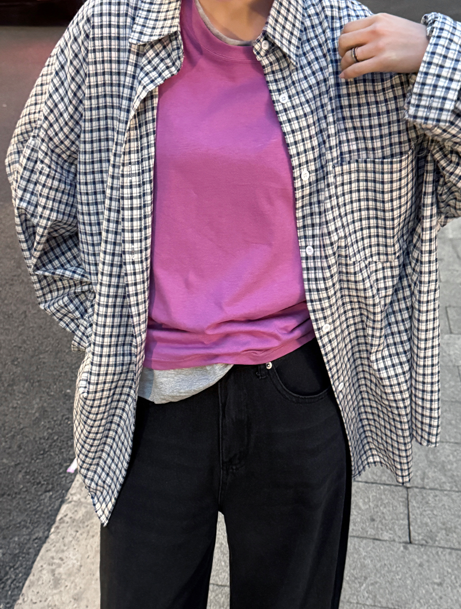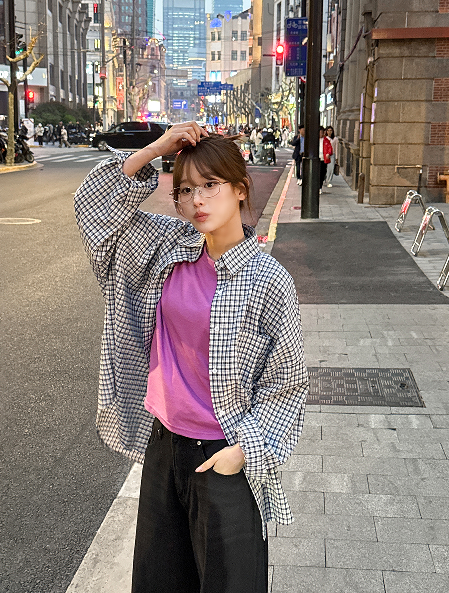 Fuaden Plaid Check Unbalance Collared Shirt