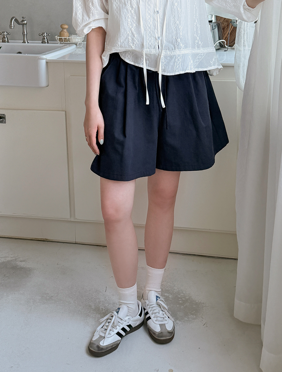 [EVELLET] Kaina Cotton Pintuck 4. Pedal Pushers Waistband Pants