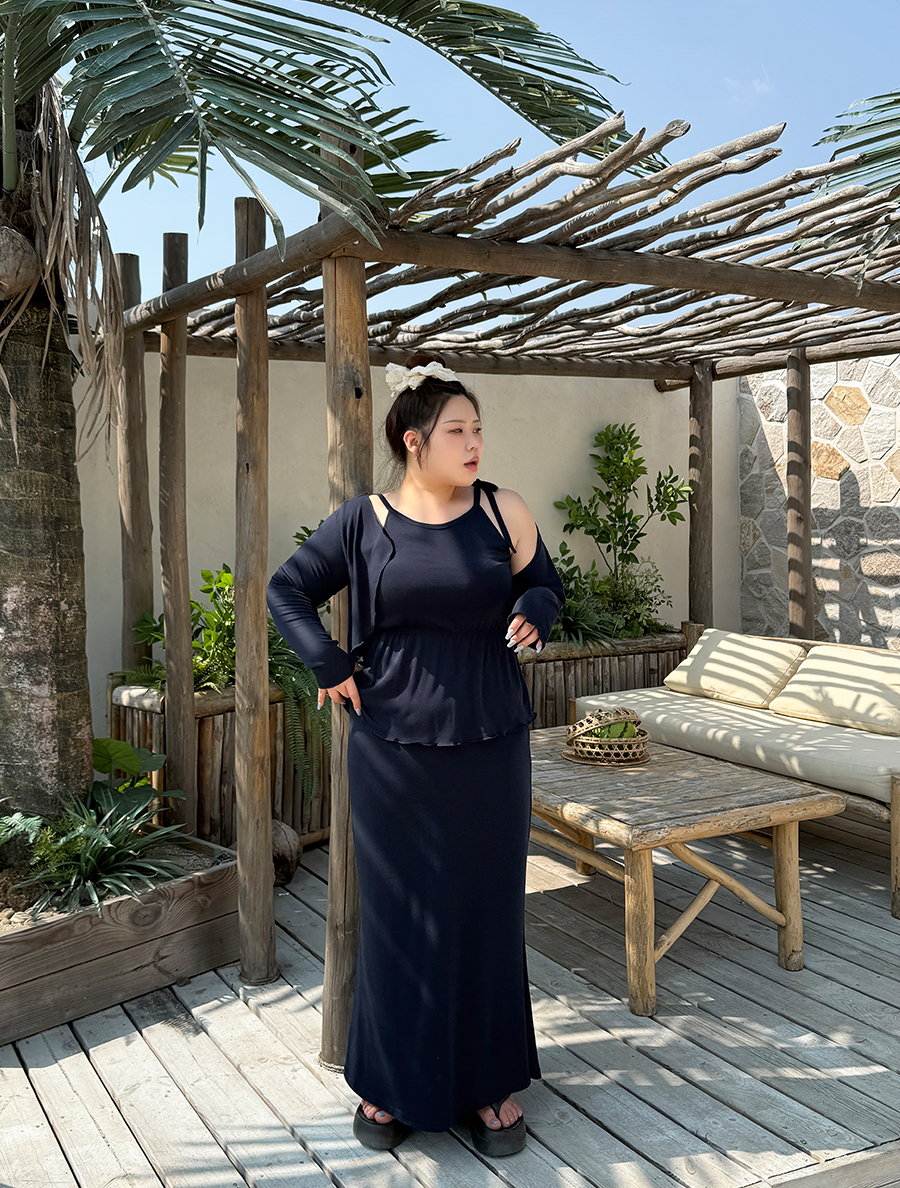 Mirenpu Shirring Bowknot Sleeveless Cardigan Set