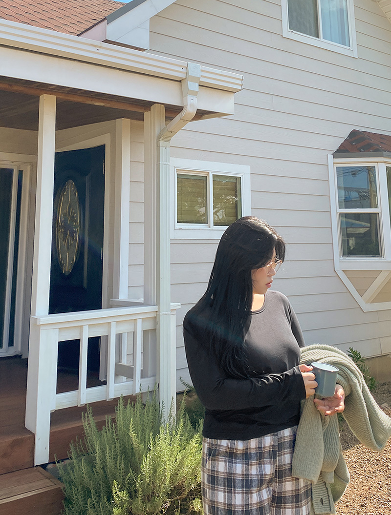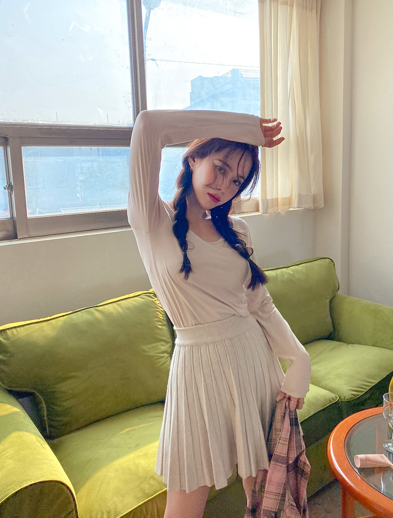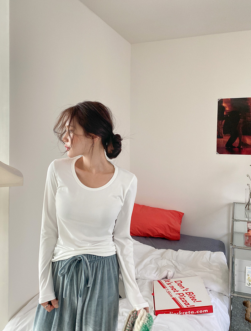 [EVELLET] Felid Soft Warm U-neck T-shirt