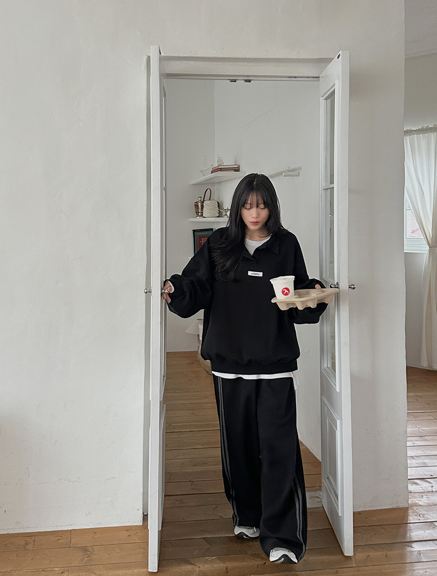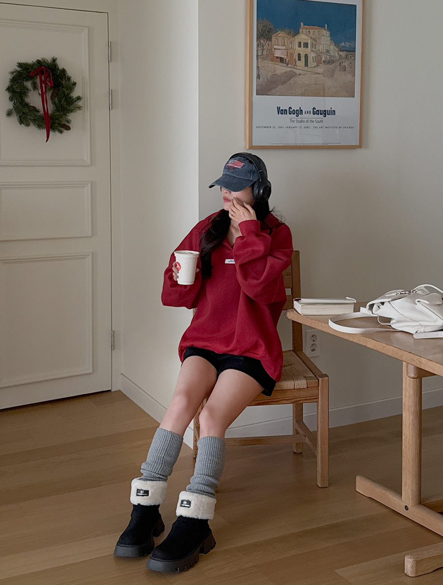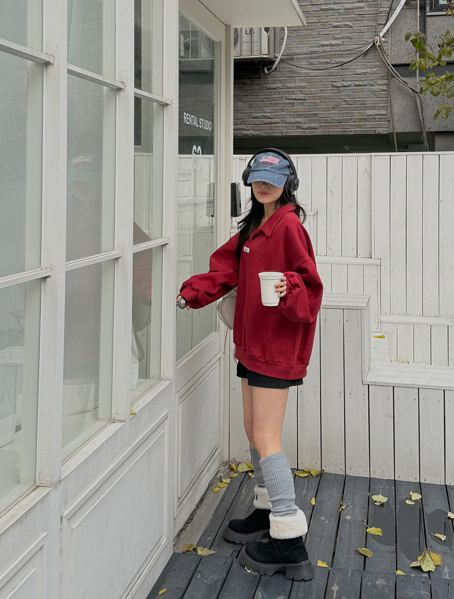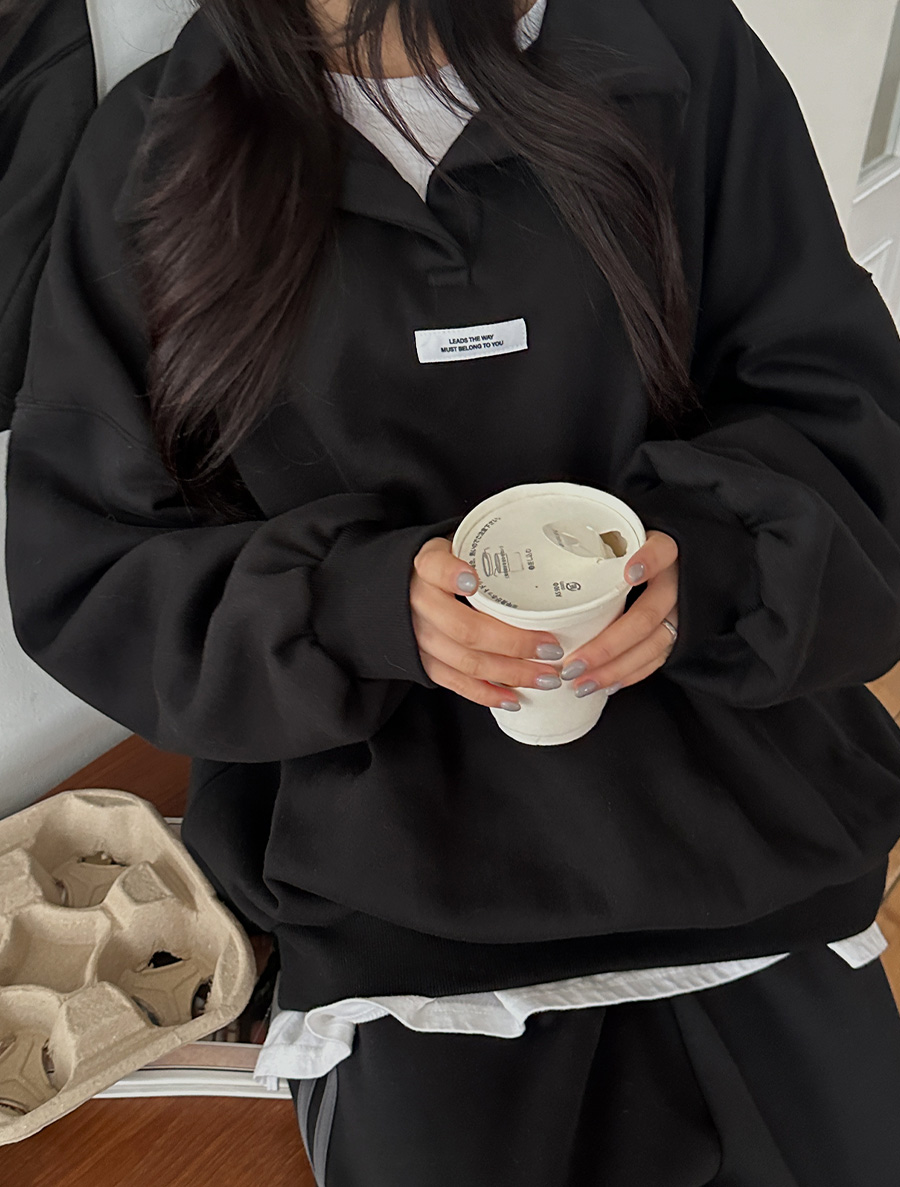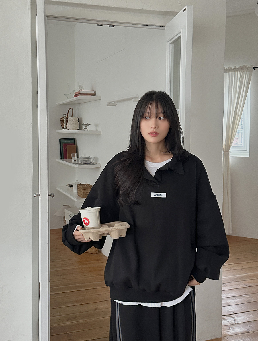 [EVELLET] Hachiko fleece open collar Labels Sweatshirt