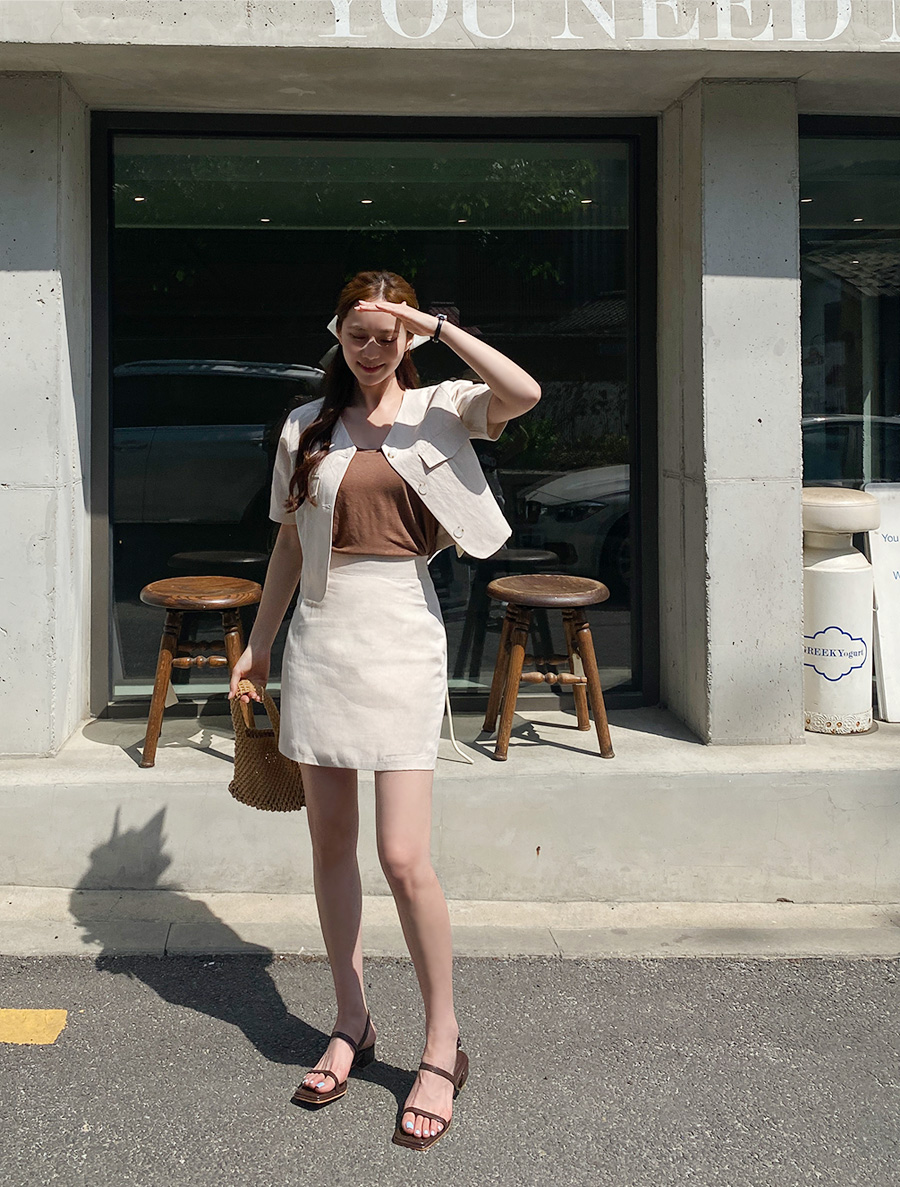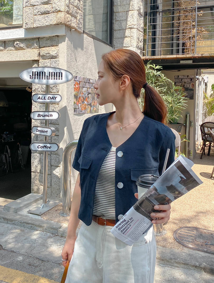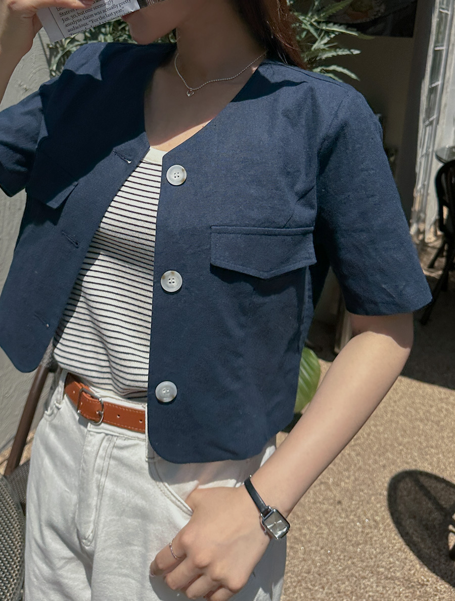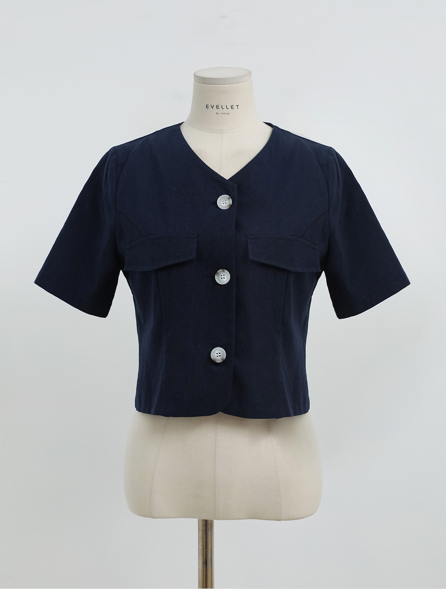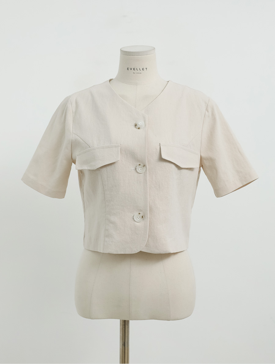 [EVELLET] Dienne Linen No collar Crop Jacket