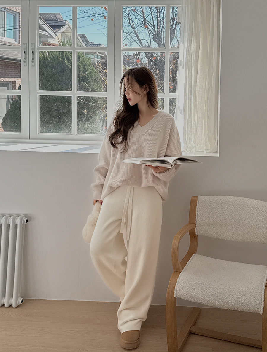 [EVELLET] Plain Knit Pants